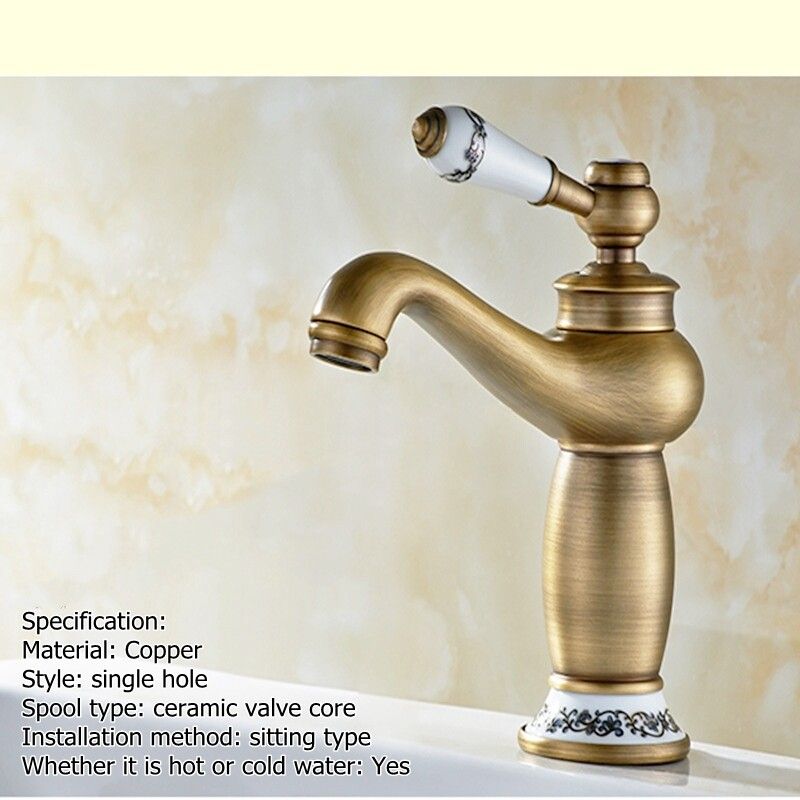 Features:1. Brass ceramic handle design, with the advantages of not easy to rust, not easy to oxidize, so that the overall style looks elegant and beautiful, adding to the artistic sense of ceramics.2. Antique brass faucets are mostly used in European style decoration, suitable for bathrooms and bathrooms of families, villas, hotels, shopping malls, etc.3. No leakage of ceramic valves, easy to achieve stable and durable operation, easy to make the water and not easy to splash.