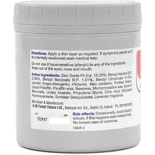 Nappy rash, Jock itch, Soreness, Tenderness, Irritation of the skin, Protection and care of cracked nipples in breastfeeding women, Promotes, protects, heals and relieves chafing.