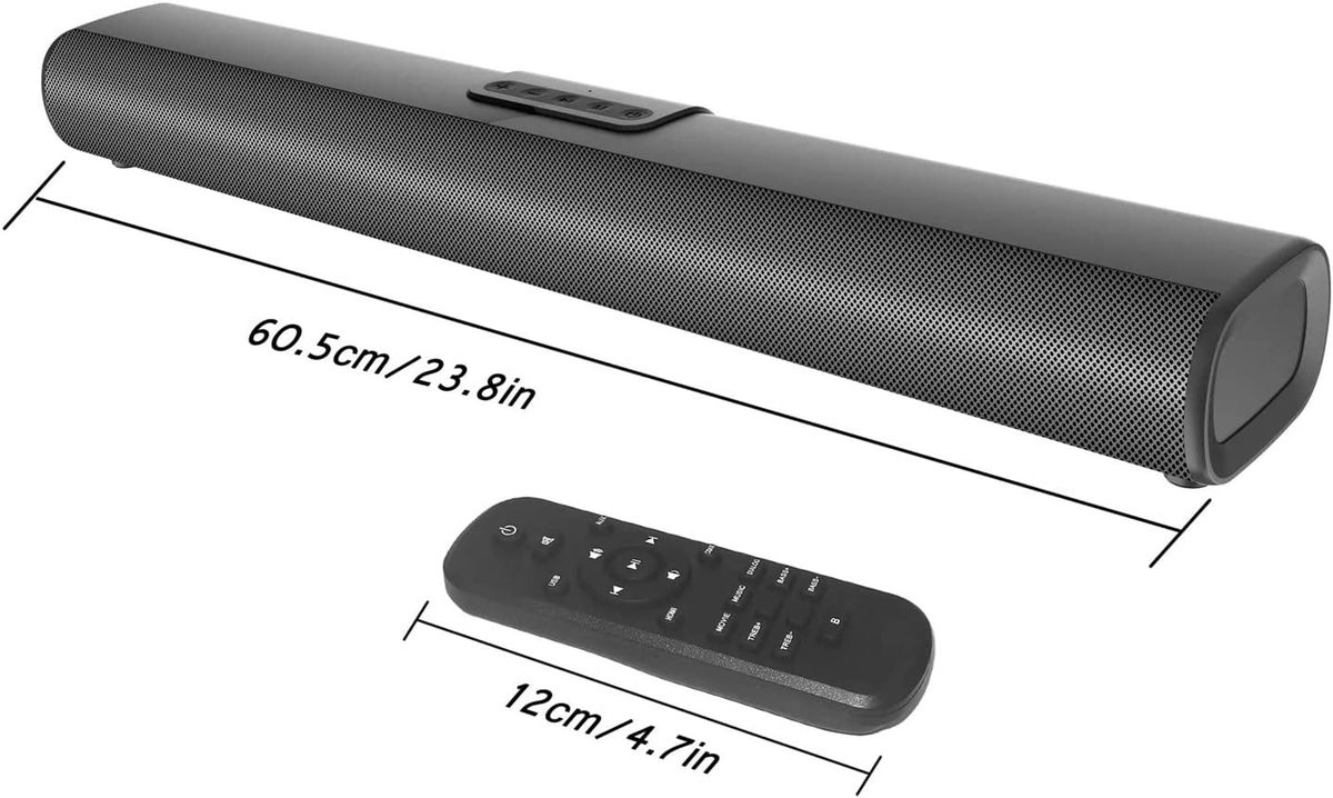 Suround Sound Home Theater System: The combination of dual speakers and dual bass diaphragm cavity bursts out amazing 3D surround sound effects and easily cover the entire room, taking you to enjoy the cinema-level listening experience.Built-in DSP Technology & 3 EQ Modes: The compact soundbar has DSP technology to ensure stable and accurate output of the sound modes. 3 EQ modes and the smart chip which can recognize and switch exclusive sound effects modes for listening to music, watching movies, and playing games, making the sound field positioning more accurate, the vocals clearer, and bring you an immersive sound experience.Wired & Wireless Connections & Support Multiple Devices: The TV surround sound speaker supports various stable connection methods. It can be connected wirelessly via bluetooth 5.0, also support standard audio cable connection: HDMI ARC, Coaxial, USB, 3.5mm AUX standard audio cable.Infrared Remote Control & Body Bottons Control: The sound system with a deep subwoofer is equipped with Body button control and an infrared remote control device, which is easy to operate, and covers 10m distance (different due to environmental factors and wireless devices). Ultra Slim & Sleek Design: The audio stereo home theater soundbar speaker comes with a fashionable and classic design, 40cm length design can save space and is also convenient to match any household appliances.