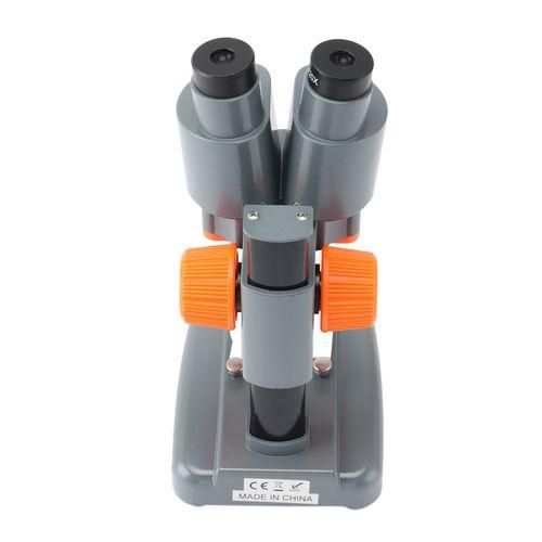 2. This mini stereo plastic microscope has sharp stereo erect image over a side field view.Widely used in electric factories,laboratories,schools,scupture and families etc.