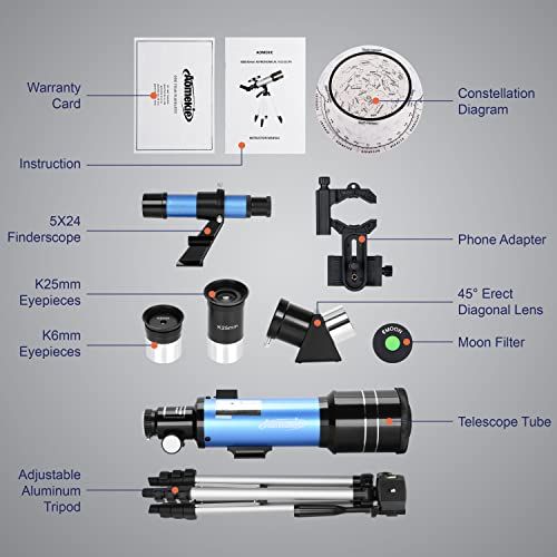 - Fully Multi-Coated Optis: All optial oated lens offers exellent ontrast and brightness of images. mm Large aperture objetive ahieves wider field of view. A fantasti astronomial telesope for kids adults and beginners to explore the spae