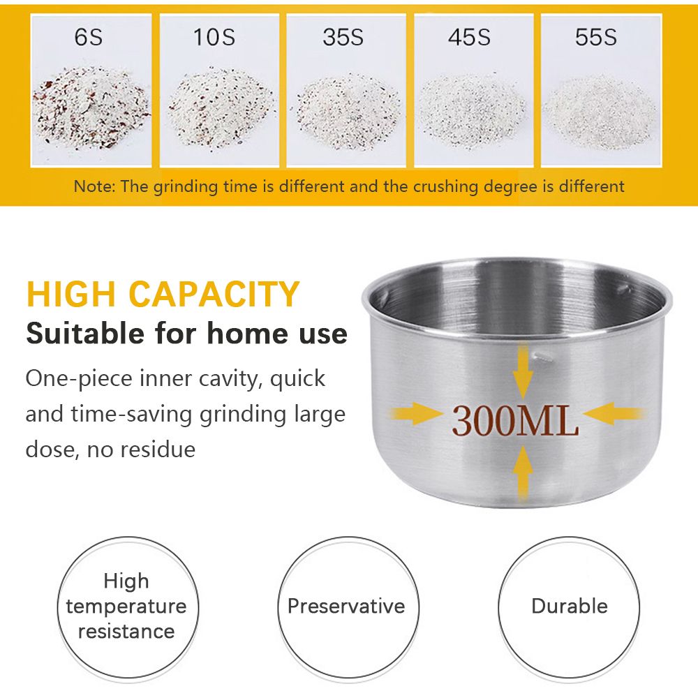 Features:1. This multi-purpose mini spice grinder can grind a variety of dry/dehydrated materials including coffee beans, rice, seeds, peppers, masala, grains, Indian spices, small herb pieces, seasonings, etc.