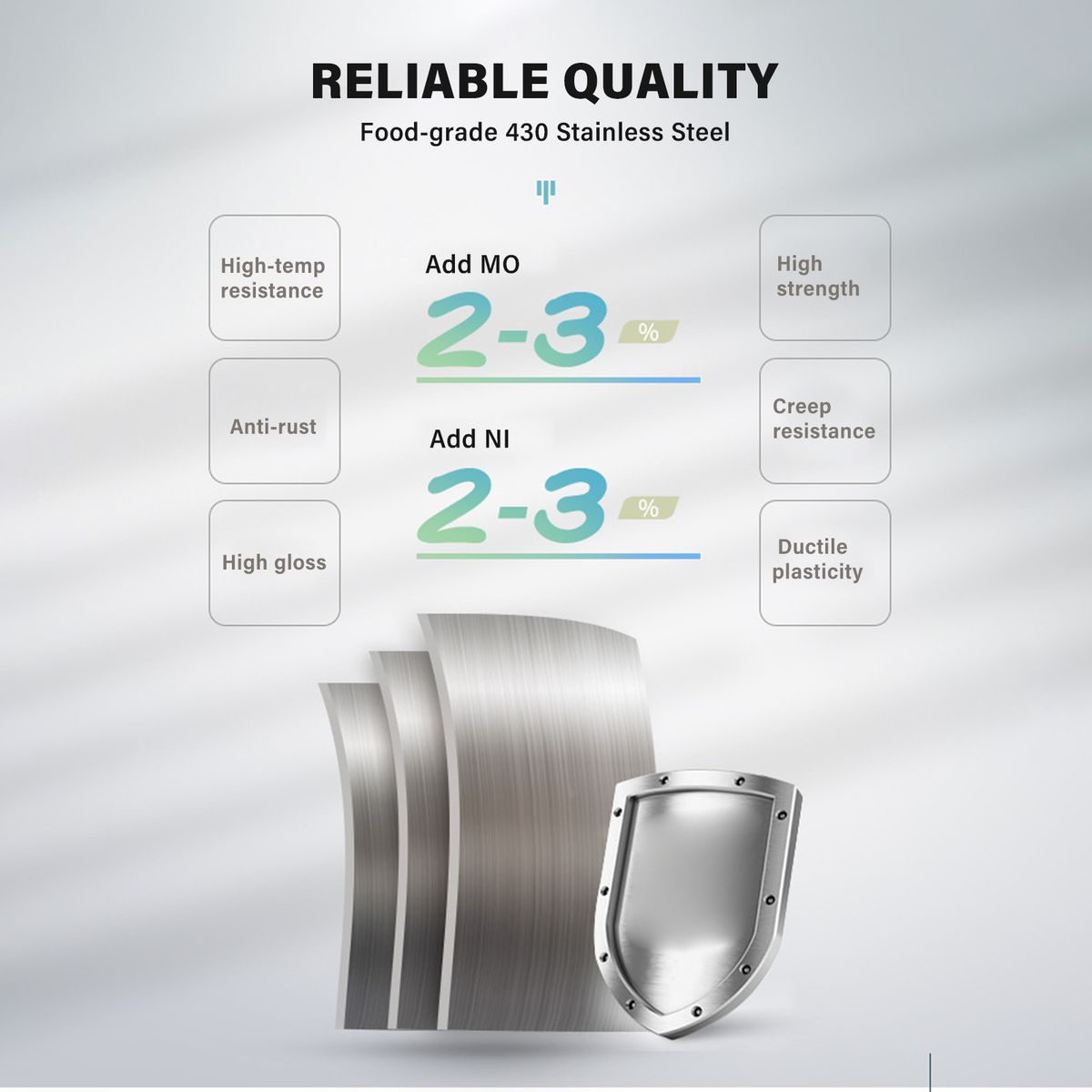 Food-grade 430 stainless steel features high-temp resistance.rust resistance, and high gloss.