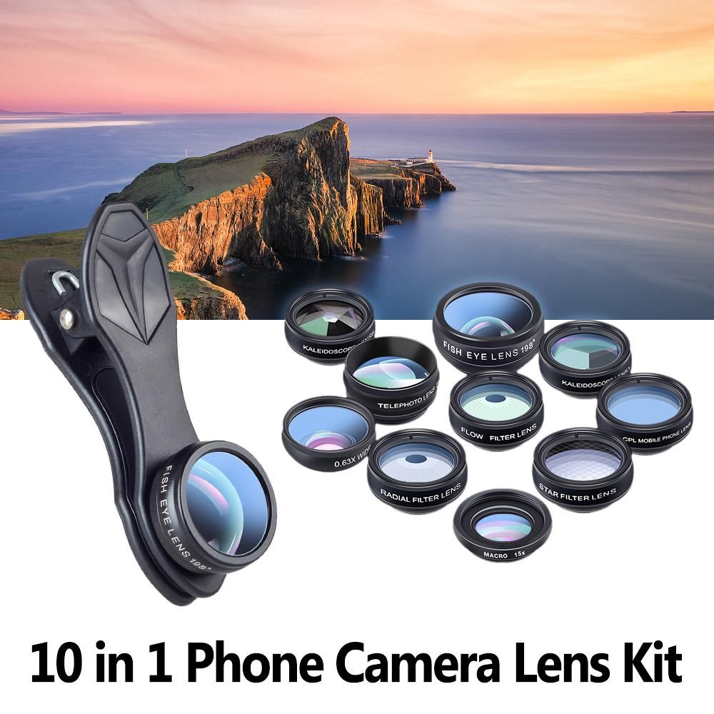 Buy APEXEL 10 in 1 Phone Camera Lens Kit with 0.63X Wide Angle + 15X Macro + 198°Fisheye + 2X Telephoto + CPL + Star Filter + Radial Filter + Flow Filter + Kaleidoscope 3 + Kaleidoscope 6 Compatible with Android iPhone in Nigeria