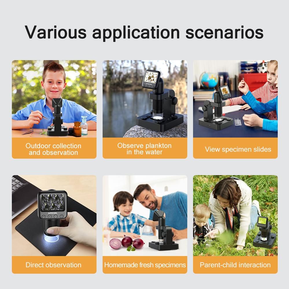 Buy APEXEL MS003 Kids USB Digital Microscope with 2.0 Inch LCD Screen 20X-100X Magnification 2MP Photo 1080P Video Built-in Battery LED Lights with Adjustable Base Storage Bag for Adults PCB Soldering Kids Outside Use in Nigeria