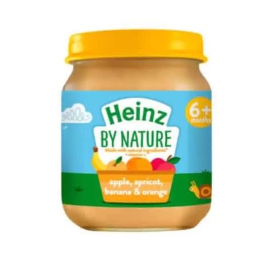 Looking for an easy start into weaning? Our Heinz By Nature Apple, Apricot, Banana & Orange dessert tastes delicious and contributes to 1 of your baby's 5 a day. Made with natural ingredients and added Vitamin C.