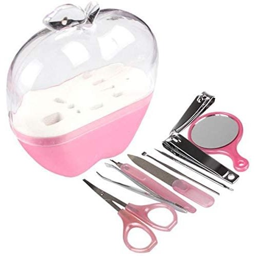 9 pcs Apple Shape Manicure Set Nail Care tools. Stainless Steel Nail Clippers Beauty Tools Specifications: this is a smart and mini Tool kit for your personal care and you can have it in your purrs in traveling or office, home, Parties. Features: Fashion and useful Unique apple shape design keeps all the tools organize 9 pieces set includes basic tools needed for manicure Small size, convenient to carry Perfectly for traveling, daily use, party gifts and favors Material: Stainless steel