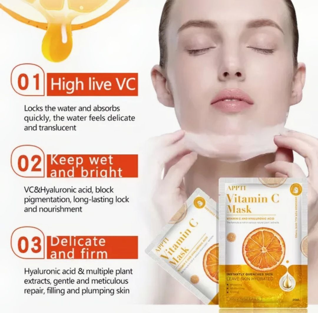 Appti Vitamin C sheet mask is also enriched with Hyaluronic Acid.This formula is rich in various natural plant extracts.