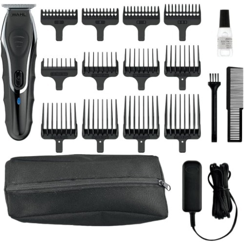 Includes:, Lithium Ion Rechargeable Trimmer, Ultra-Close T-Blade, 4 Stubble Guide Combs, (1.6, 3.2, 4.8, & 7.9 Mm), 8 Long Hair Guide Combs, (3, 6, 10, 13, 16, 19, 22, & 25 Mm), Storage Pouch, Mustache Comb, Blade Oil, Cleaning Brush, Transformer, Instruction Manual