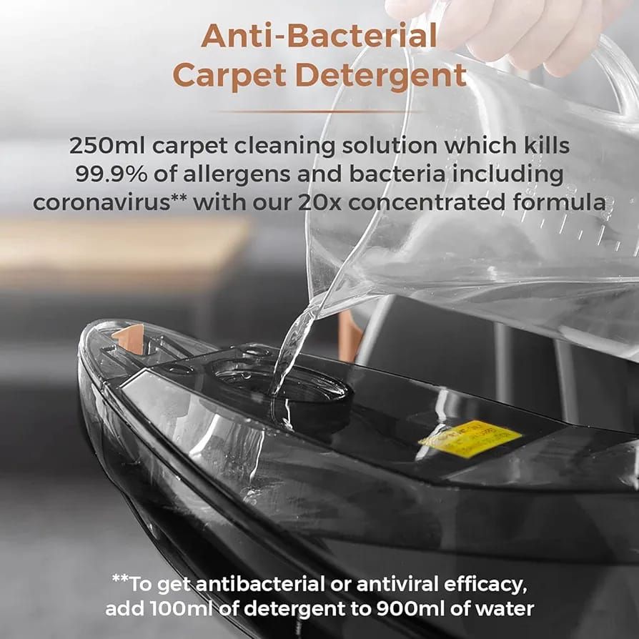 600WPerfect for Pet OwnersHigh Performance Brush Bar Quick Pick-UpSuitable for Carpets & Rugs1.6L Dirty Water TankCompact DesignRemovable Dual-Tank System1.5L Clean Water Tank6 Metre Power CordCord Storage HooksAll-in-One Clean and Restore SolutionEffective on Stains and Pet Messes