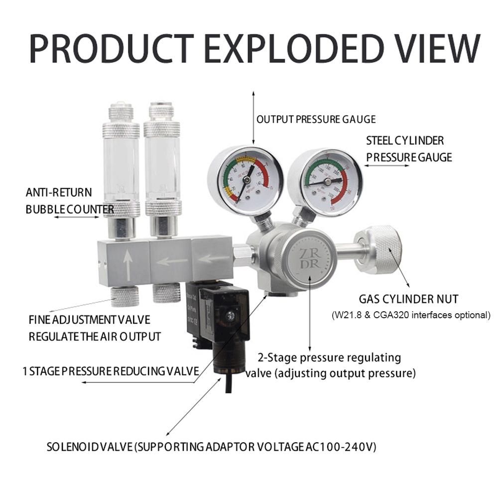 Buy Aquarium CO2 Regulator Dual Stage Adjustable Output Pressure with DC Solenoid Bubble Counter W21.8 Interface in Nigeria