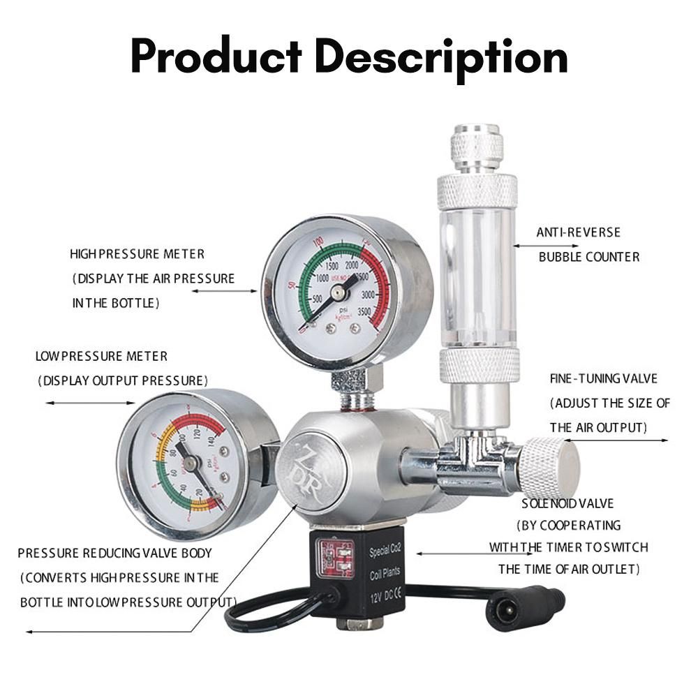 Buy Aquarium CO2 Regulator Waterproof Carbon Dioxide Regulator with Big Gauges Bubble Counter Solenoid for W21.8 Interface Cylinder in Nigeria