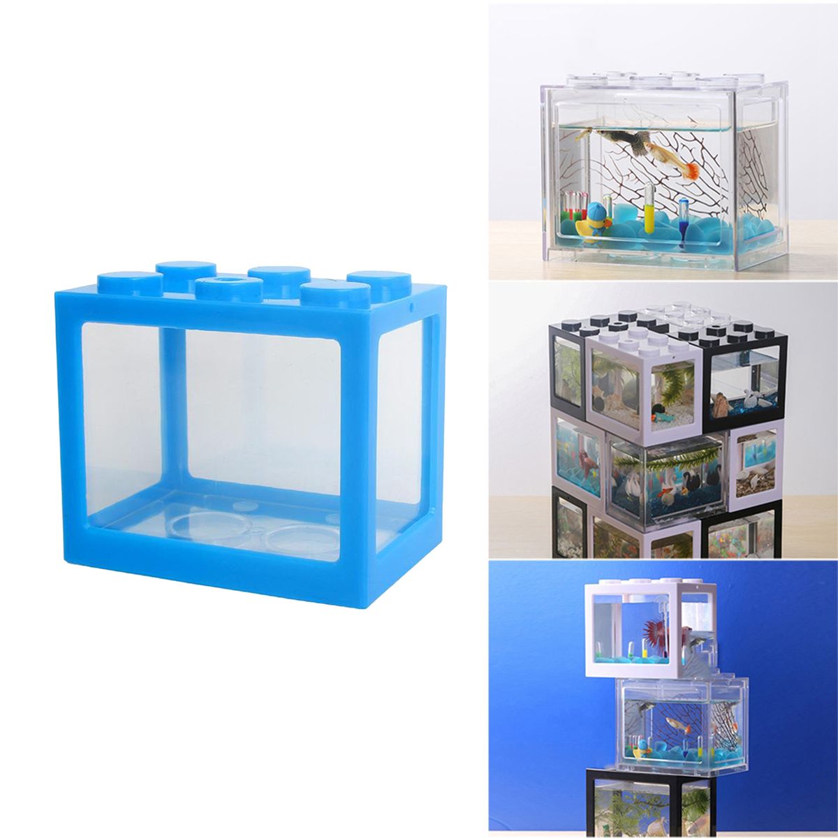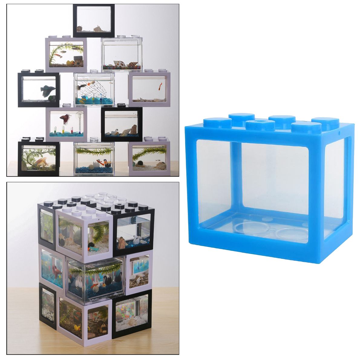 Mini Fish Tank: Creative stackable building blocks design, you can freely combine superimpose. Mini shape, the decorative fish tank looks beautiful.
