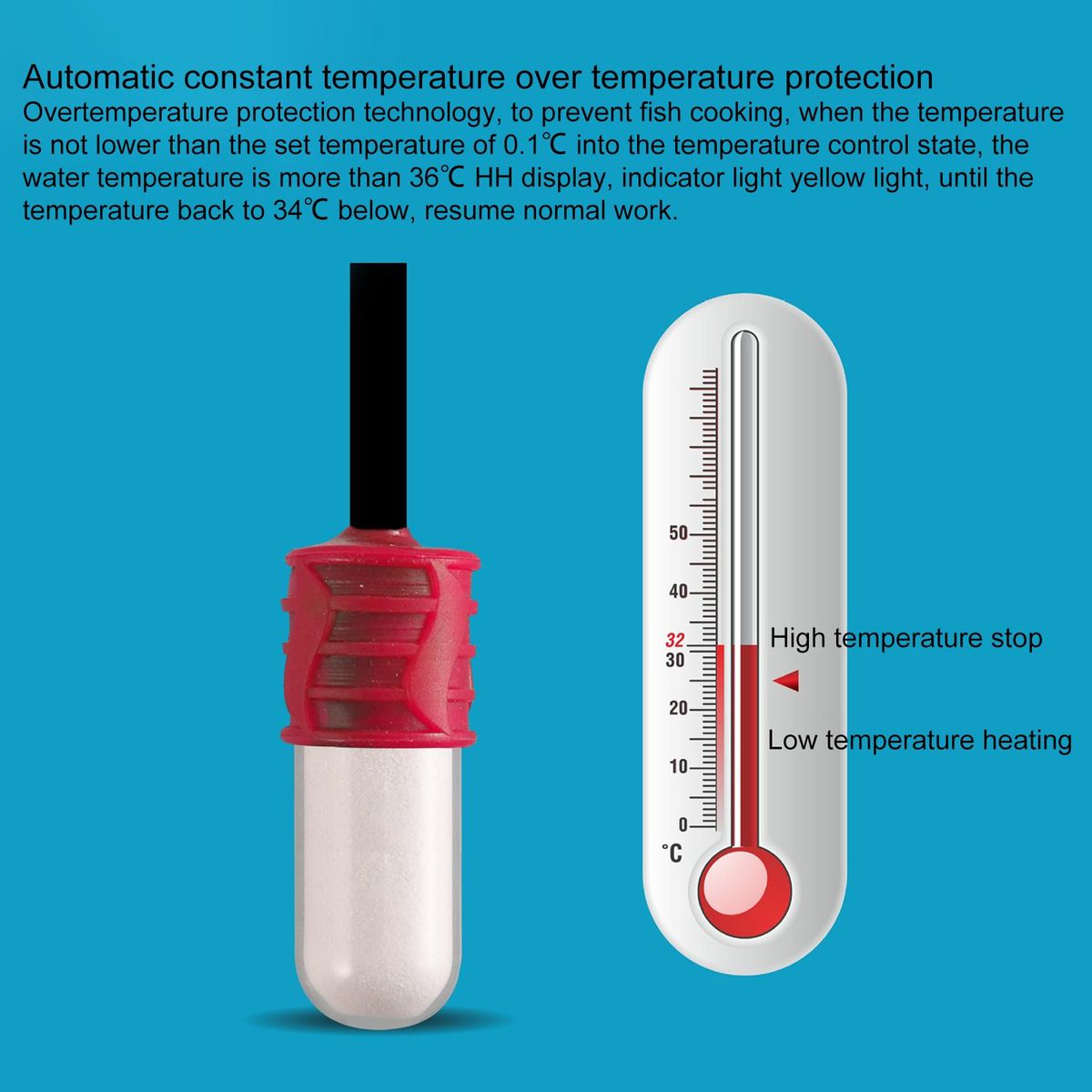 This fish tank heater features precise temperature control, over temperature and explosion-proof protection, which is safe to use.