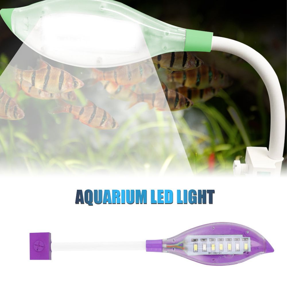 Aquarium Light Small LED Clip Light for Fish Tank USB Leaf Shape LED Light for Aquarium Fish Tank White Blue Lighting Color