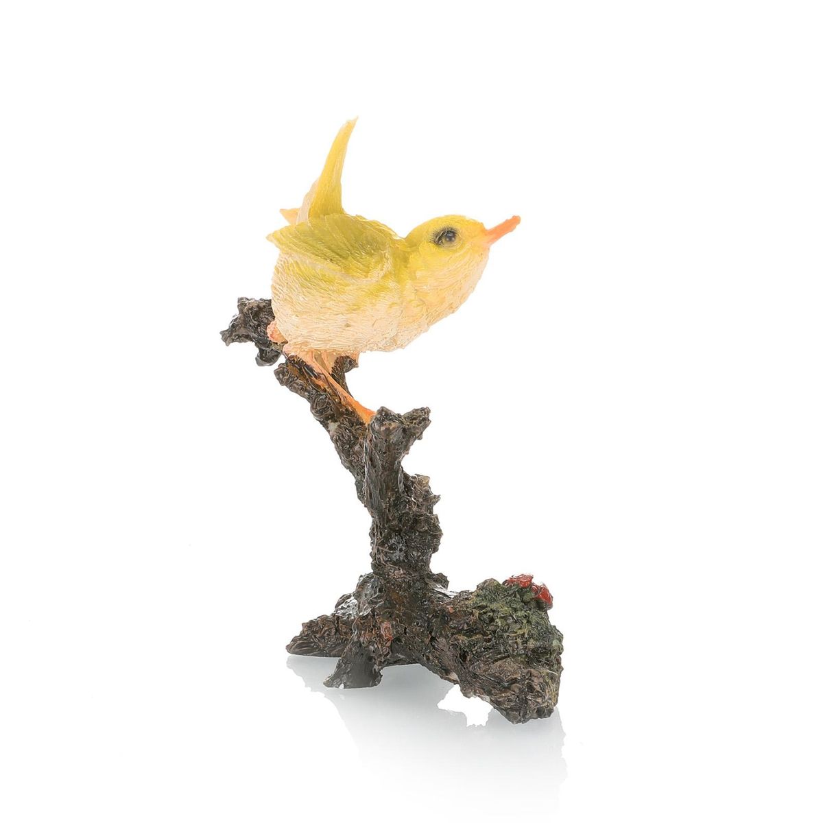 Made of resin bird and simulated tree, this ornament is finely crafted, brightly colored and realistic in shape, it does not fade when immersed in water for a long time.