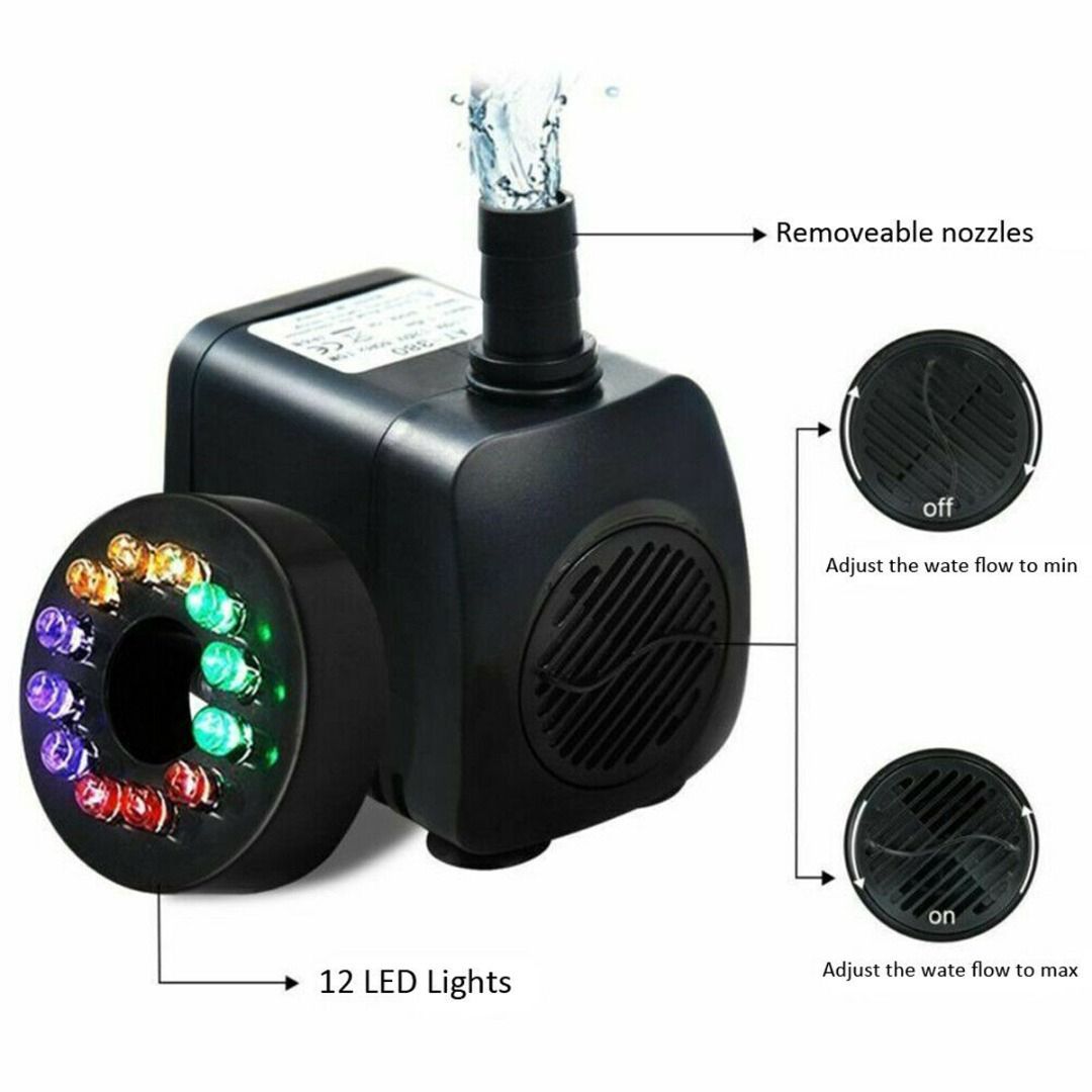 12 LED lights: LED submersible pump with 12 LED lights for night illumination