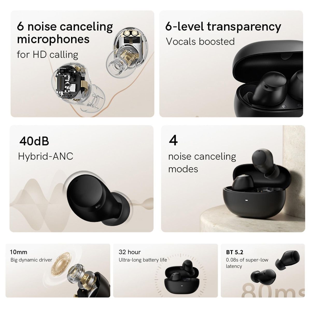 Buy ArcBuds Earbuds BT 5.2 Headsets Wireless ANC Earbuds Noise-Canceling IPX5 Waterproof Headphones in Nigeria