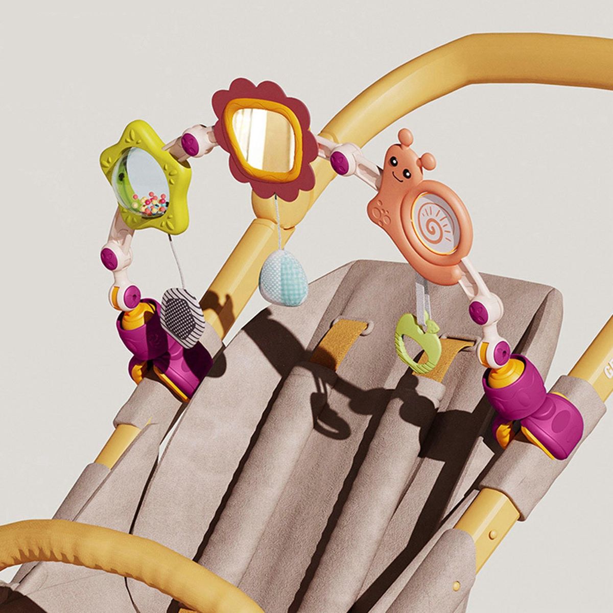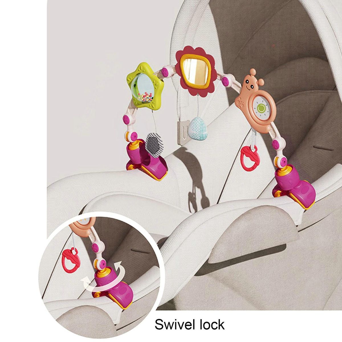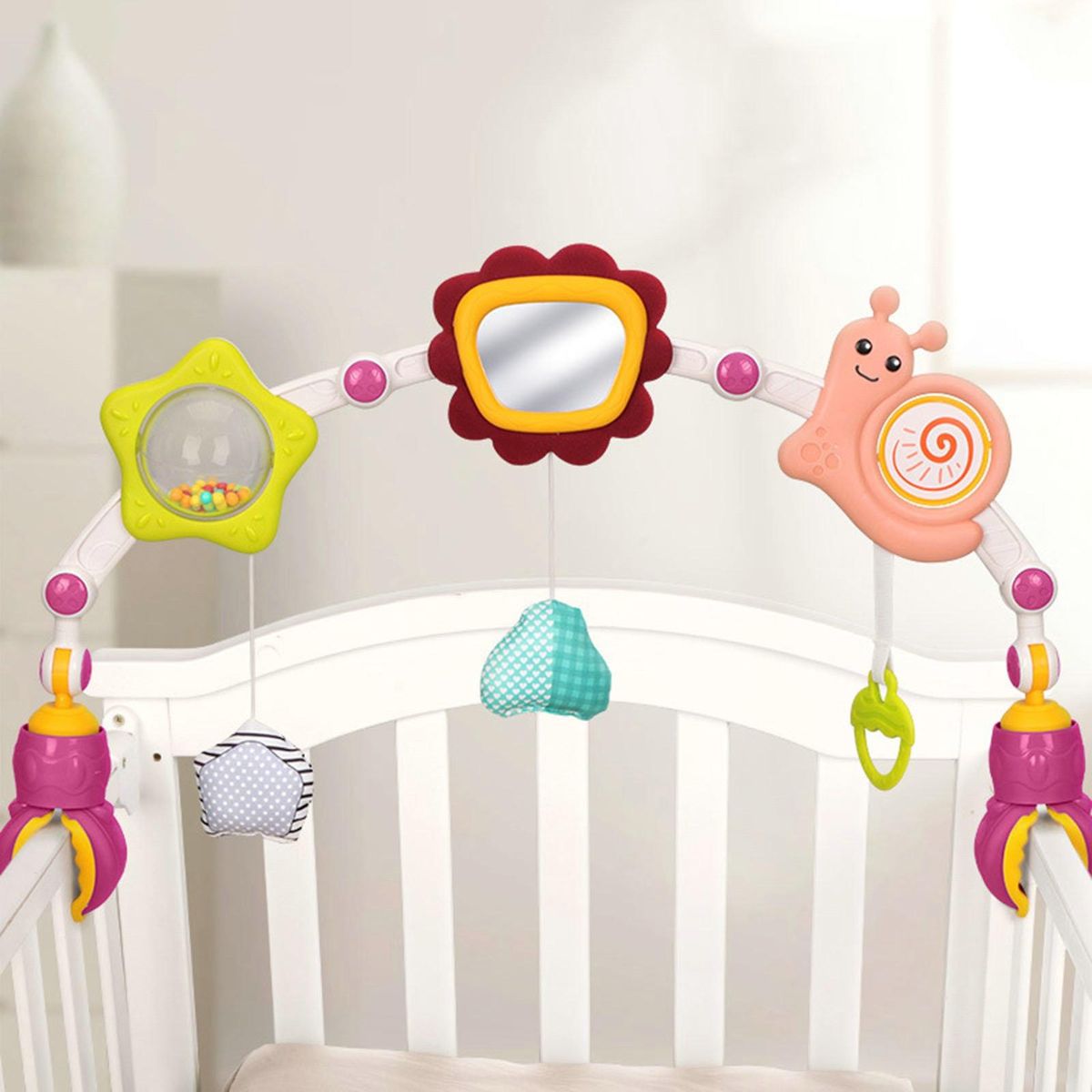 The adjustable clips make it convenient to connect and adjust the toy to your desired position. crafted with high-quality materials, this baby arch toy is suitable for little hands and guarantees hours of entertainment. it effortlessly attaches to most strollers, car seats, and bouncers, making it perfect for both travel and home use.