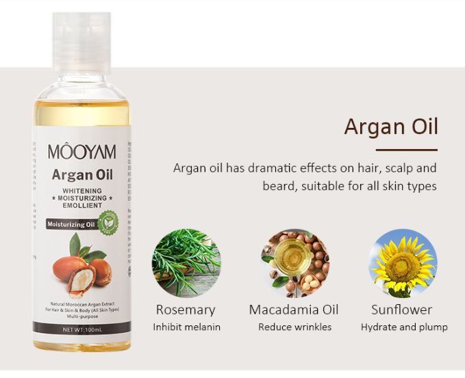 rapidly infiltrate into skin, moisturize, whiten, replenish nutrients, relieve dry skin, lighten fine lines & Spots, wrinkles remover, remove acne print, enhance skin elasticity and easily get absorbed without oiliness and can effectively fix multiple skin problems. Used as Carrier Oil, Since it facilitates the Absorption of other Essential Oils and Plant Extracts.This carrier oil has remarkable effects on the hair, scalp, beards and it can be used for all skin types. Light-weight and fsat absorbing. its gentle enough to be used on sensitive skin. Can also be used for argan oil spray, for DIY beauty of making argan oil shampoo and conditioner or even making argan oil hair mask.