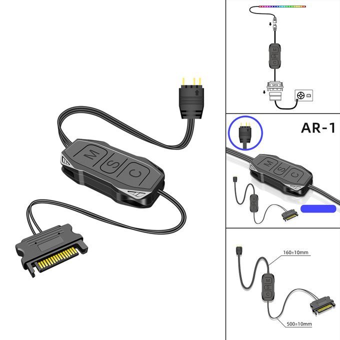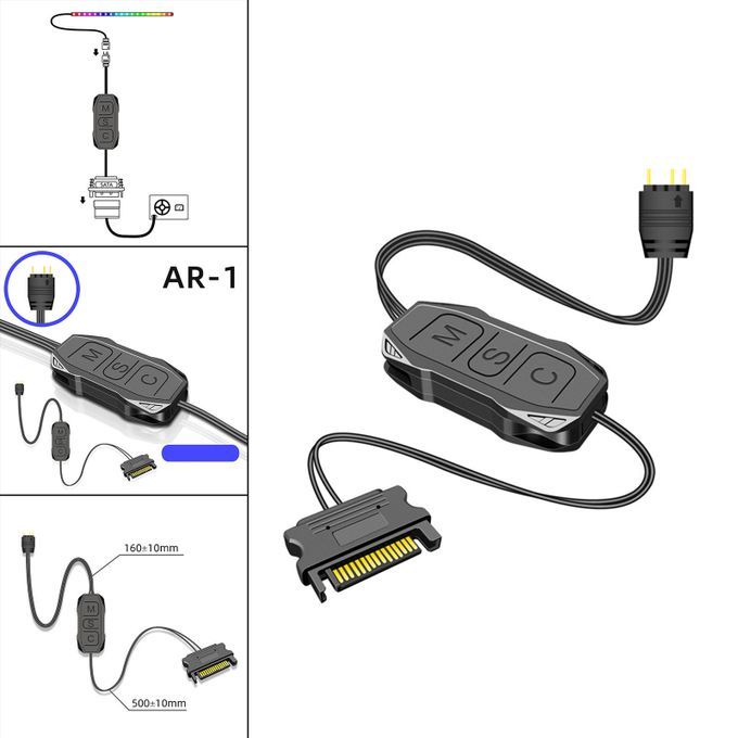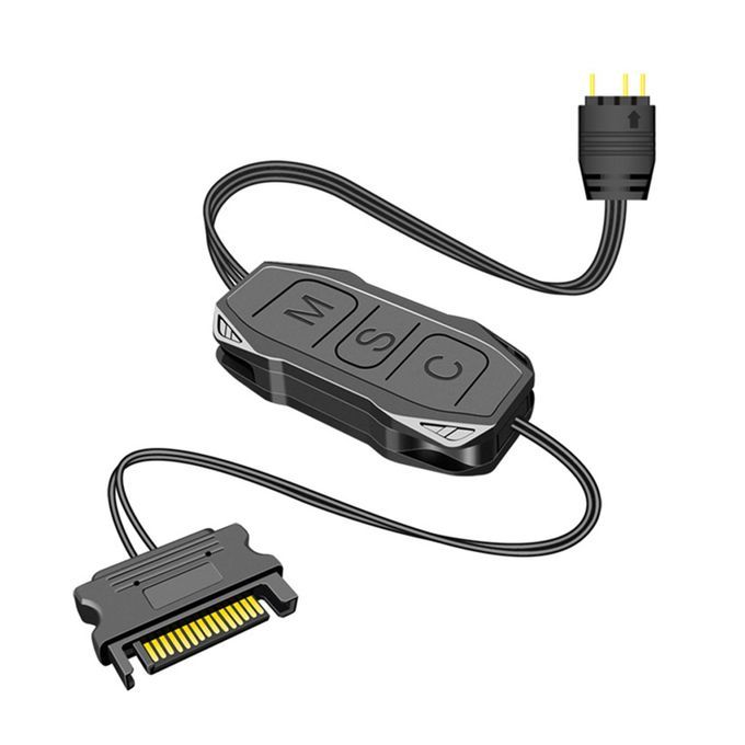 3Pin ARGB pin connector, power supply, one connected to 5V ARGB 3Pin device, one connected to power supply.Simple button design, simple operation: M button, switch to the light mode, S button, switch light change speed, long press for 4 seconds to turn on or off the light. C key, click to switch the light color and light , long press for 5 seconds to adjust the brightness.Achieve manual control of light effects, can achieve single color, trotting lamp, and other modes.Applicable Equipment: 5V ARGB Equipment such as chassis fan, light bar, illuminating board, air cooling radiator, water cooling radiator, etc.Line Length: 3Pin, About 6.29inch. , About 19.68inch