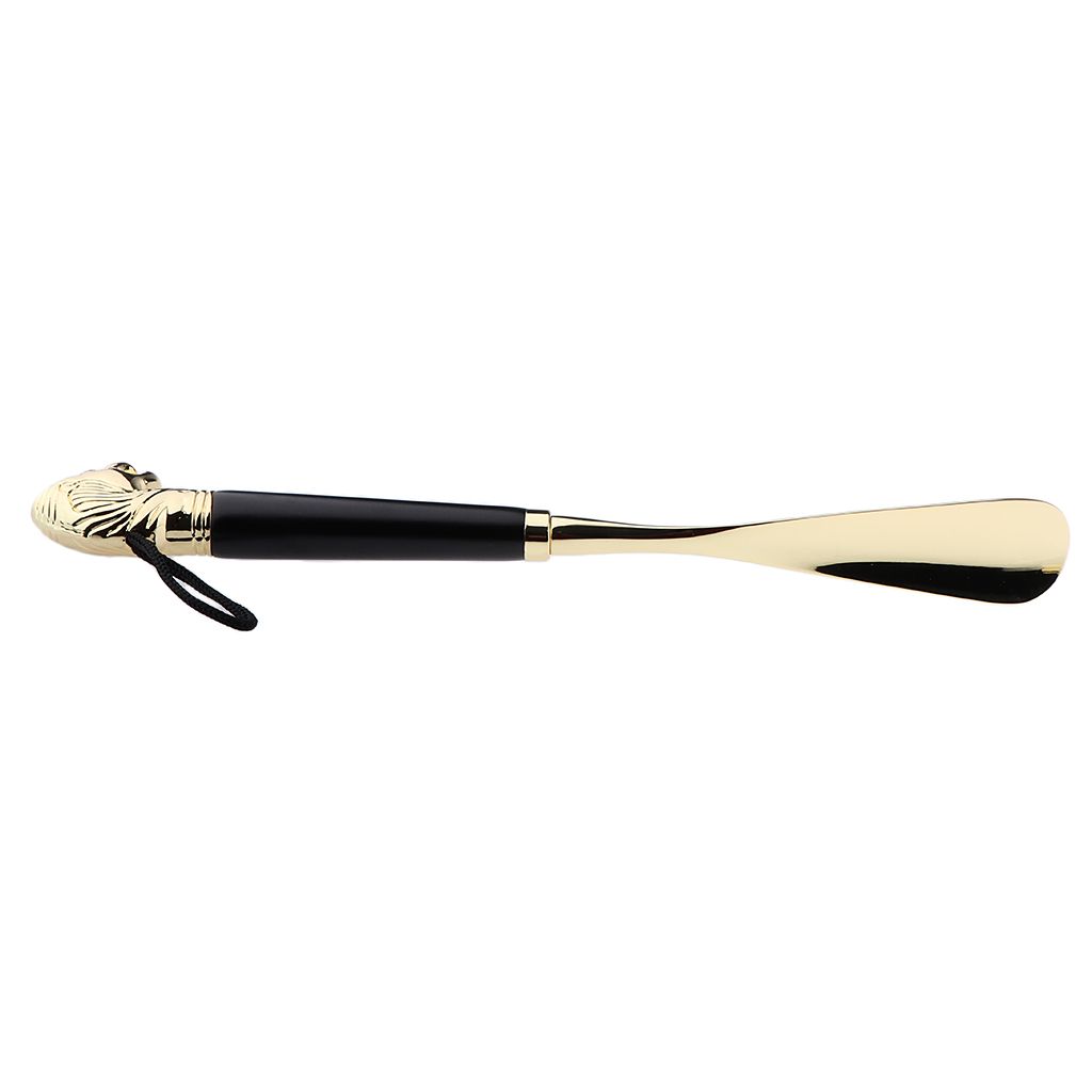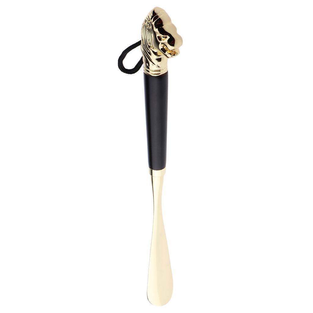 Vintage lion head black woood long handle shoe hornProfessional gold spoon lifter shoehornJust place the spoon section in the rear of the heel and your foot into your shoes every timeGreat unisex design home tool for most type of footwearMore convenient for the old and the pregnant and man with a belly