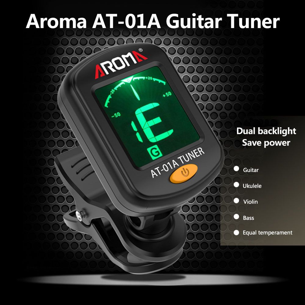Compact size clip-on tuner for guitar, bass, ukulele, violin and equal temperament.