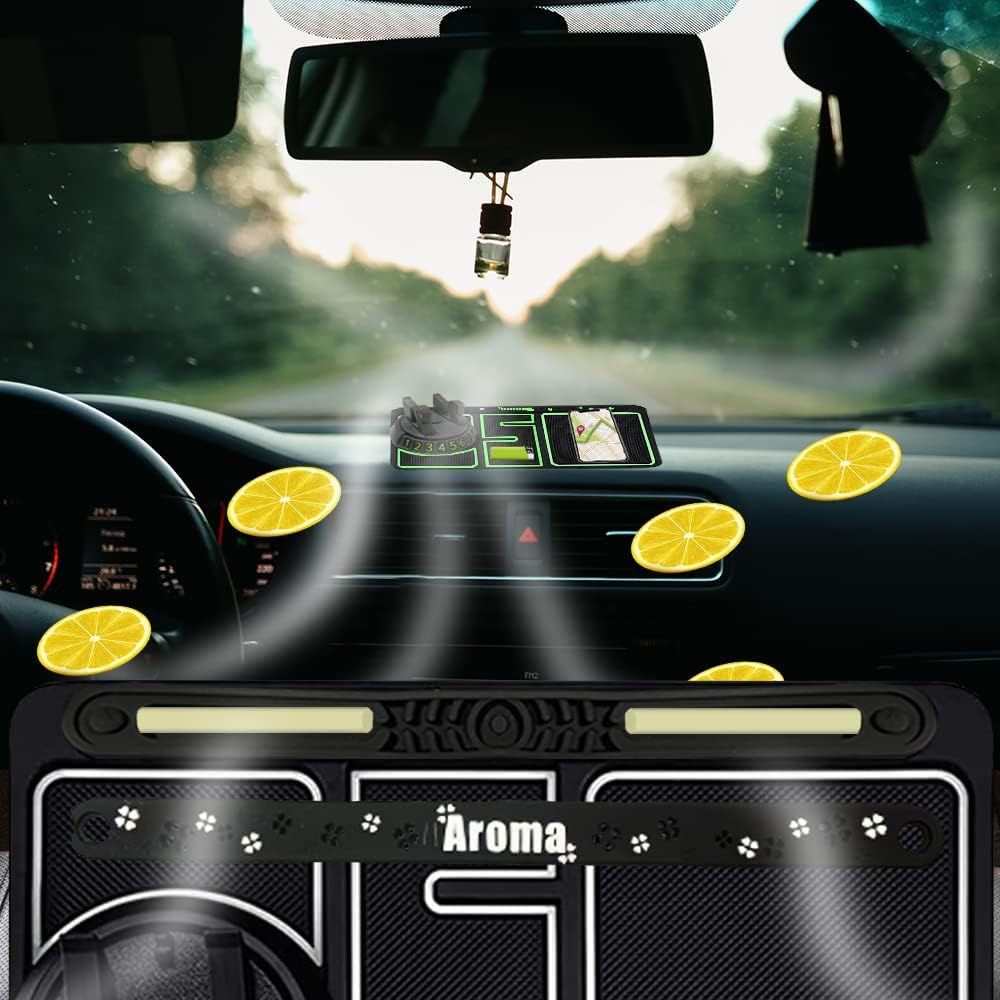 Built-in aromatherapy design, car dashboard adhesive pad with 2 aromatherapy sticks, directly on the instrument panel, small holes to exude fragrance, drive away the odor in the car. You are comfortable when driving