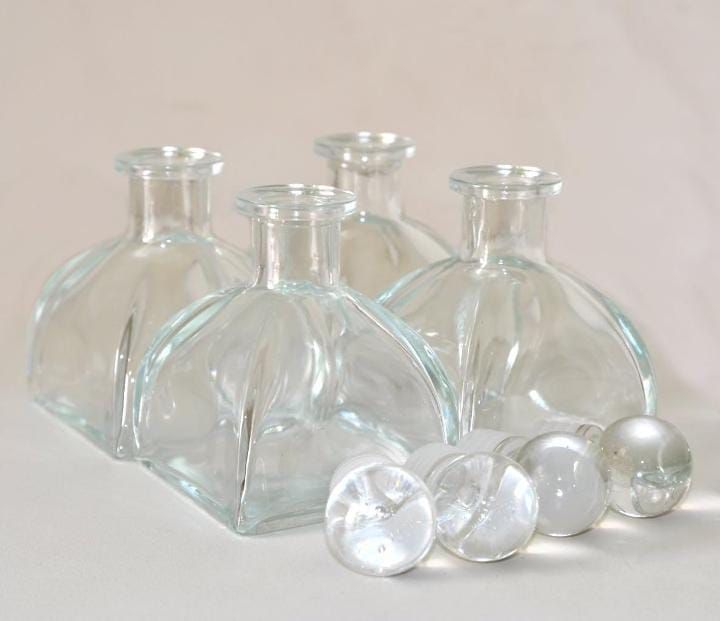 Pack of 4 9 cm high 150 ml diffuser glass bottles with 4 glass ball stoppers (Globular lids)