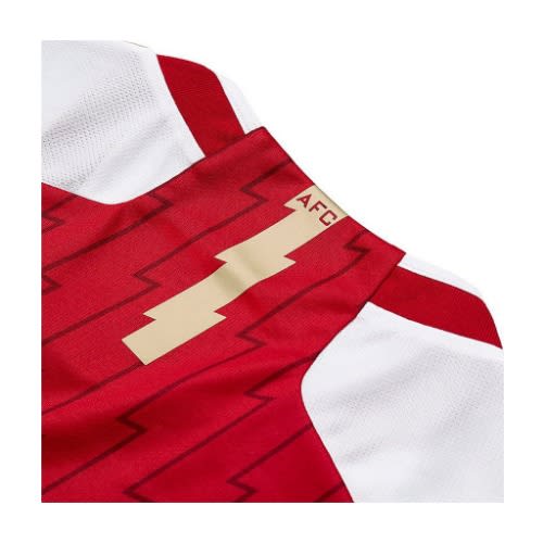 Arsenal’s heritage gets a modern update in the Arsenal 23/24 Home Shirt. Celebrating the 20th anniversary of the Invincibles season, this 23/24 home shirt comes in a bright, new shade of red adorned with lightning bolts and gold details for a sophisticated take on a classic kit. Crafted from breathable recycled polyester, it features an embroidered Club crest, mesh side panels and moisture-absorbing AEROREADY technology for all-day everyday ease, the Arsenal way.