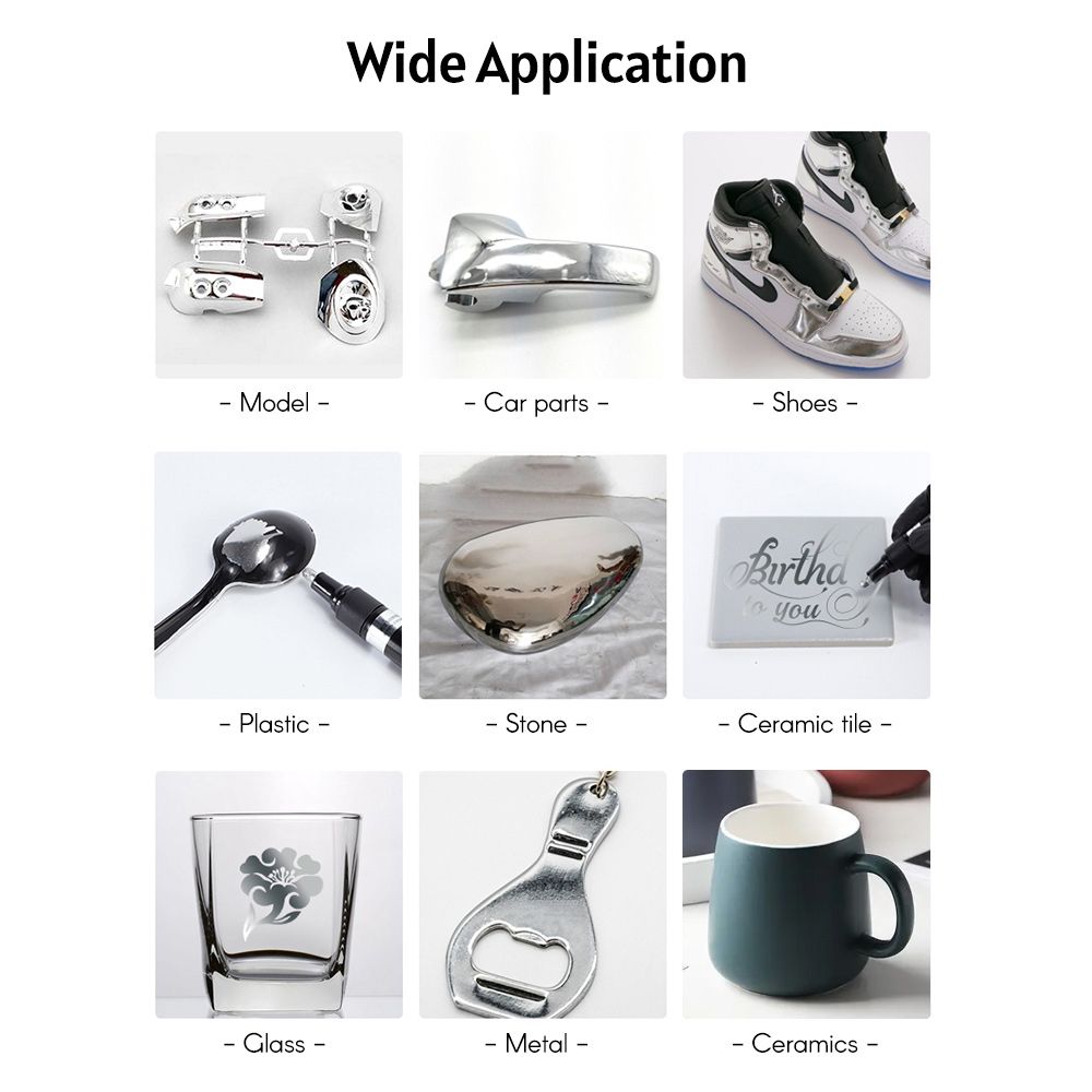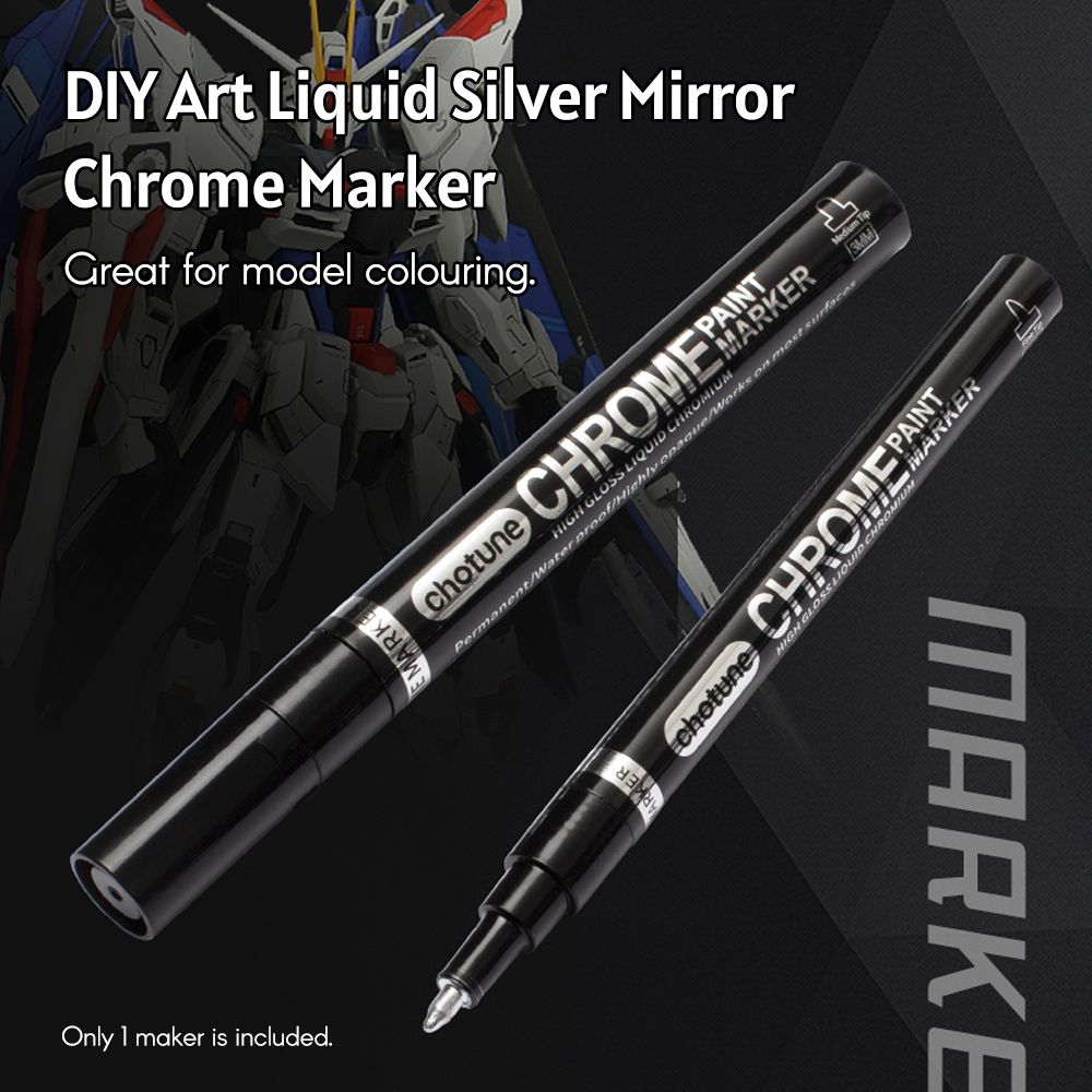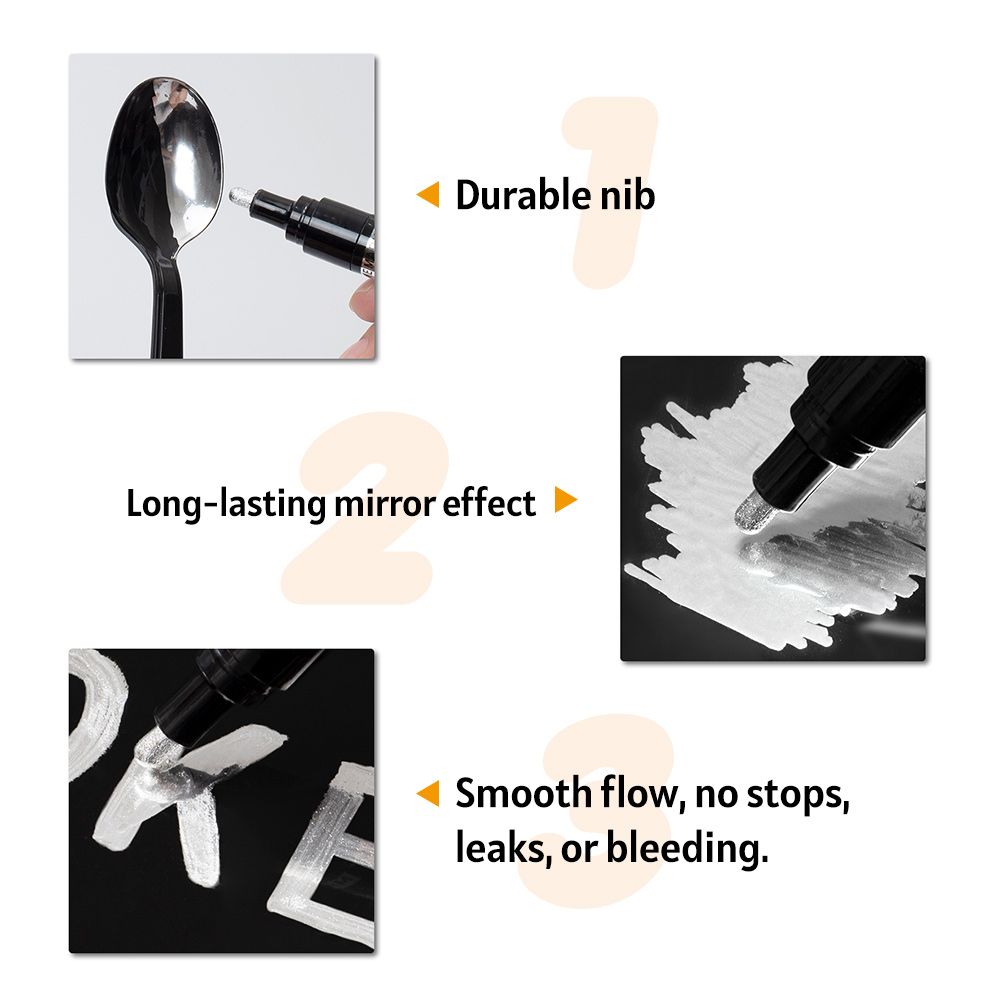 Liquid silver chrome mirror marker for DIY, features reflective ink, creating a real high-gloss mirror effect!