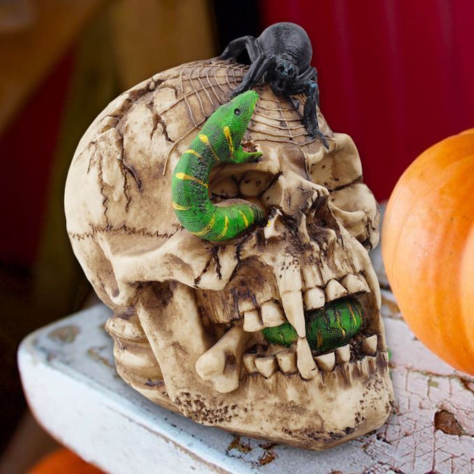 Welcome to my store, we have many kinds of price products, we launch new products every day, please follow my store and pay more attention, for more products, Please click on the seller information to enter our store to buy, we hope give you a pleasant shopping experience. Thank you and have a nice day!Description:Antique finish resin skull statue human skull sculpture, elegant, modern and mysterious.