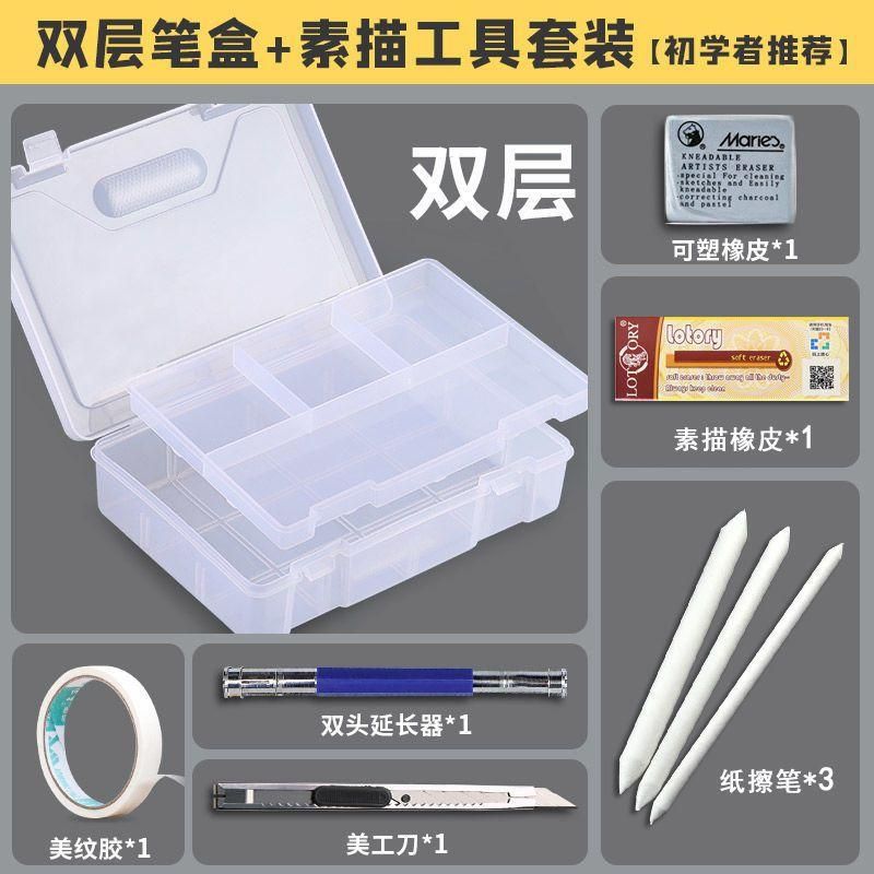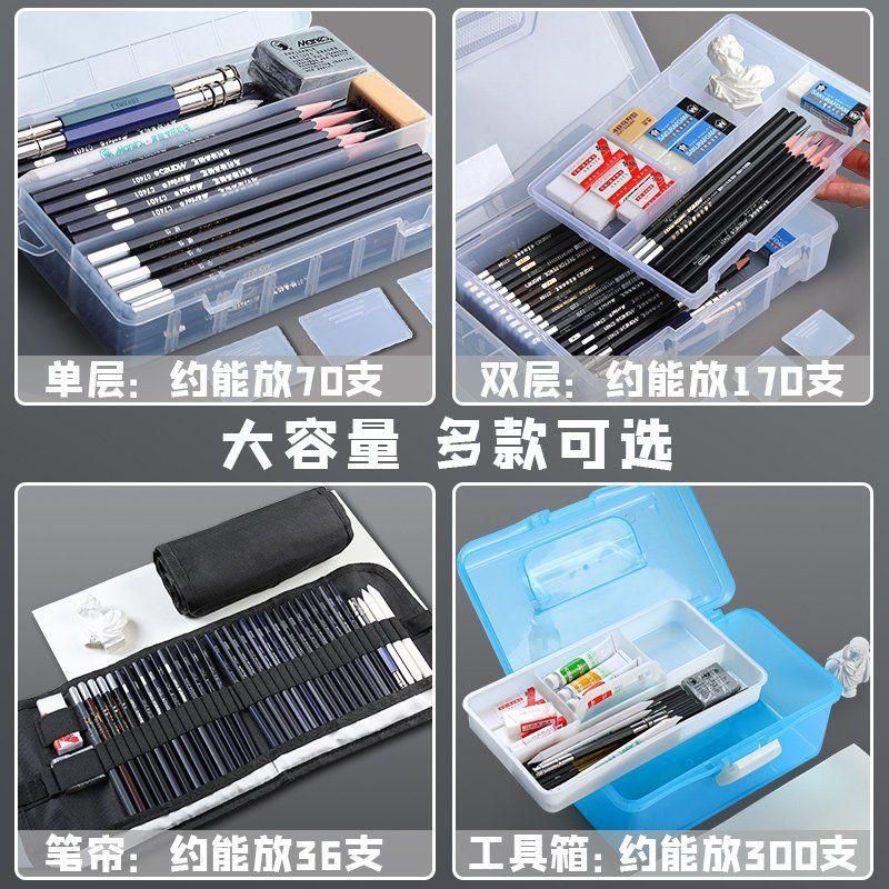 Color: Single Layer Pencil Case [9-Piece Sketch Recommended for Beginners], Double Layer Pencil Case [9-Piece Sketch Recommended for Art Exam], [Large Double Layer] 2 Can Hold More than 340 Pencils, [Small Single Layer] 2 Can Hold More than 140 Pencils