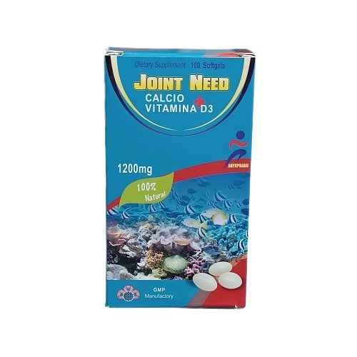 Arykpharm Joint Need 100% Natural Calcium 1200mg + Vitamin D3 is provided in specially formulated soft gels to encourage the easy absorption of calcium into the blood. Calcium in the form of calcium carbonate is better absorbed by the body and works regardless of stomach acid content. so it can be taken both before and after food. Vitamin D3 further increases calcium absorption to help maintain healthy bones and teeth and relieves symptoms of calcium deficiency such as muscle cramps, constant fatigue, brittle nails and joint pains.BENEFITS OF CALCIUM AND VITAMIN D3- Build strong bones and teeth- Activates enzymes for digestion- Promotes the proper function of muscles- Prevents Osteoporosis and Rickets- This unique formulation is more readily absorbed by the bodyDOSAGE:Take 1 soft gel two times daily as a dietary supplement preferable with meals.