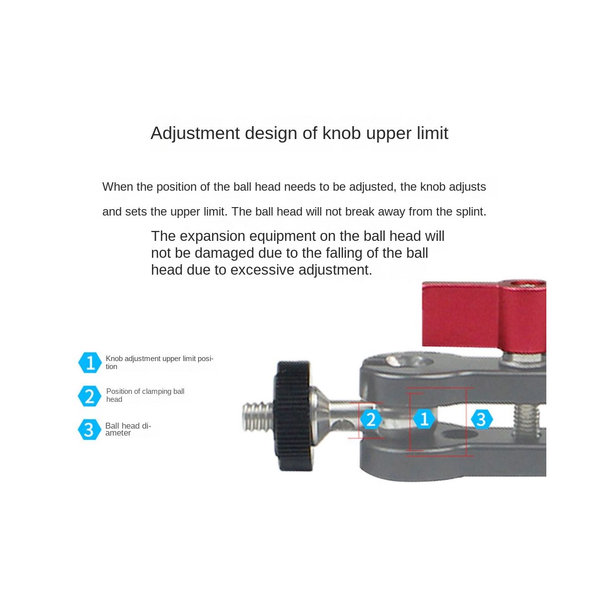 Knob upper limit adjustment design When the position of the ball head needs to be adjusted the knob adjustment sets the upper limit The ball head will not detach from the splint Will not cause the ball head to fall off due to over-adjustment and damage the expanded equipment connected to the ball head