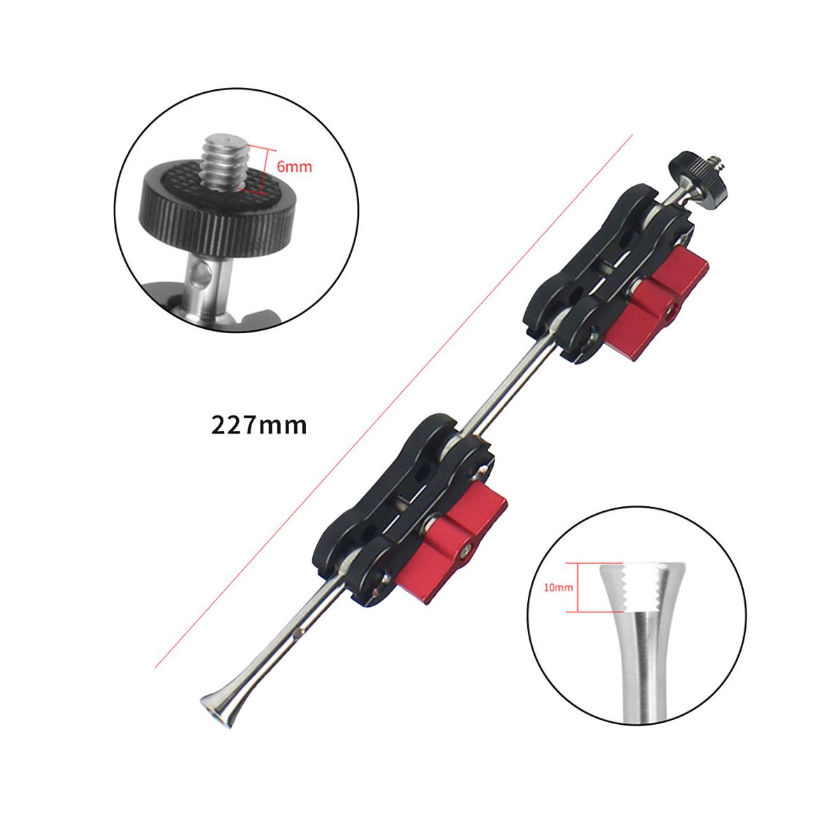 Knob upper limit adjustment design When the position of the ball head needs to be adjusted the knob adjustment sets the upper limit The ball head will not detach from the splint Will not cause the ball head to fall off due to over-adjustment and damage the expanded equipment connected to the ball head