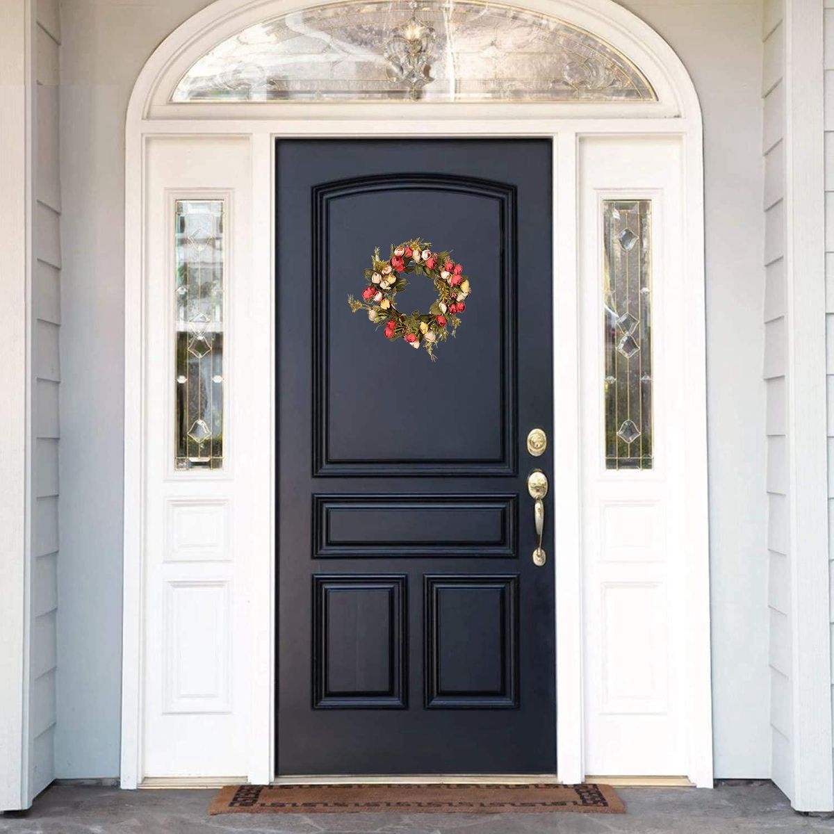 [Eye-catching and Adorable]Hanger wall wreath, filling up the space on any interior or exterior door; Comes with an attached flexible shape-holding for hanging, this lovely wreath ornament brings cheer wherever it hangs.