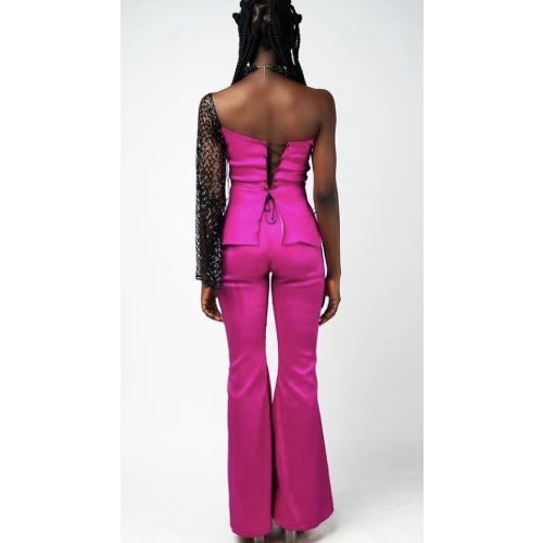 Ankara Jacket and Trouser for Women, African two Piece with Stone net at the Back