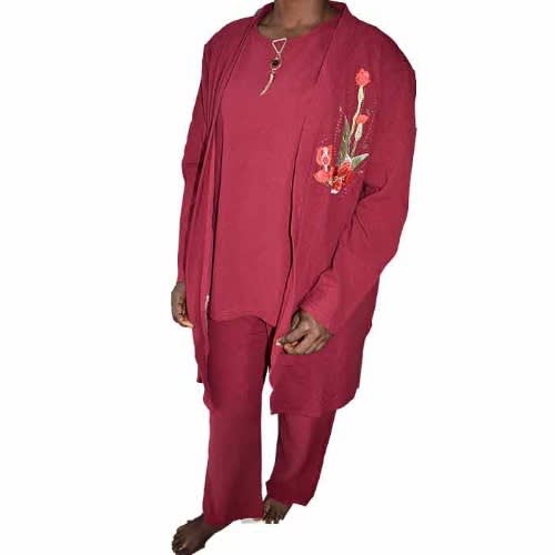 This set is definitely chic. It's both very comfy and fashionable. Comfort and effortless elegance is the reason you would be buying this set. The fabric is soft but not light. Just the right texture to make you burst with sophistication.