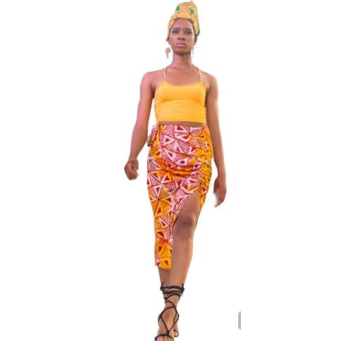 It can be worn with Long Sleeve Body hug Top and sandals or high heels.