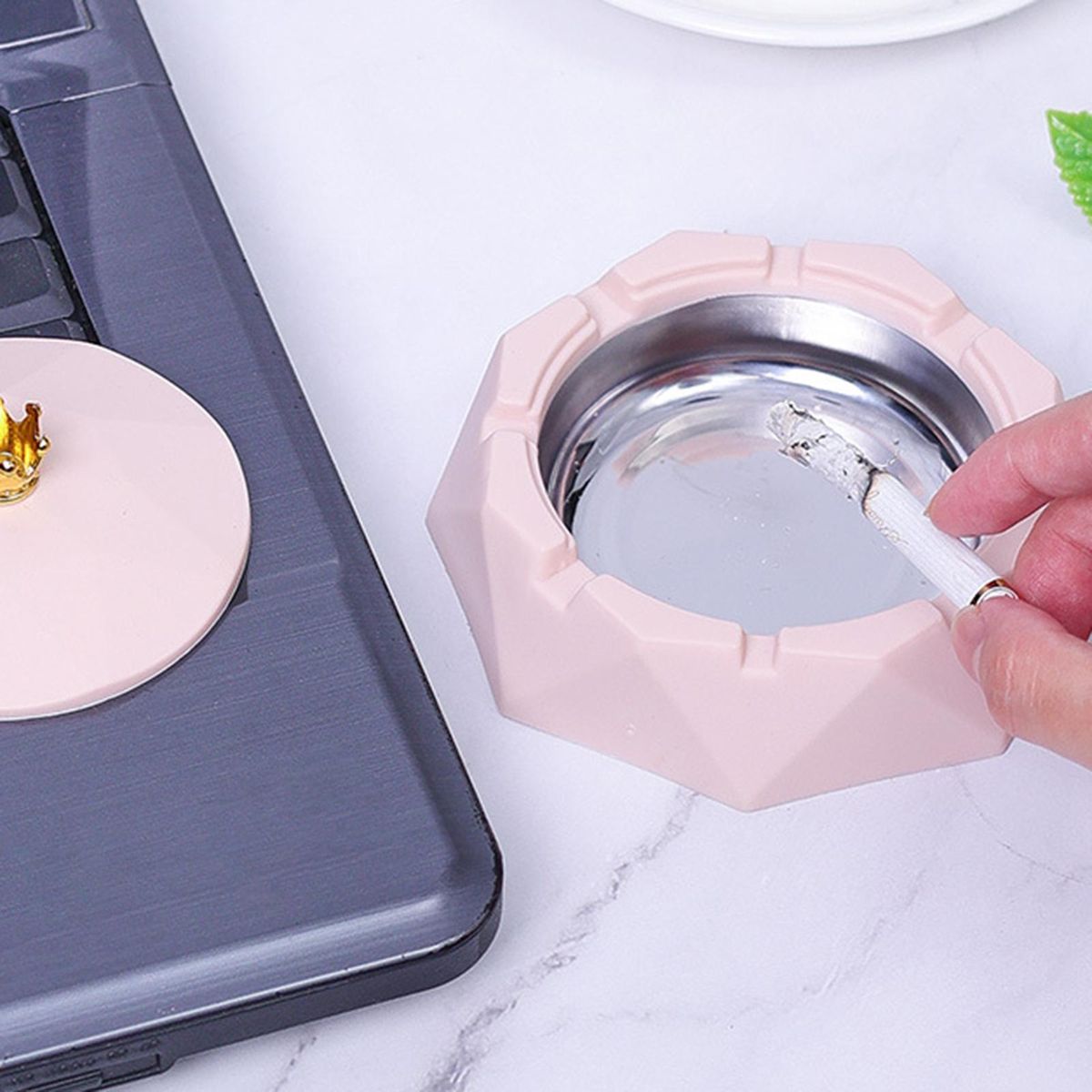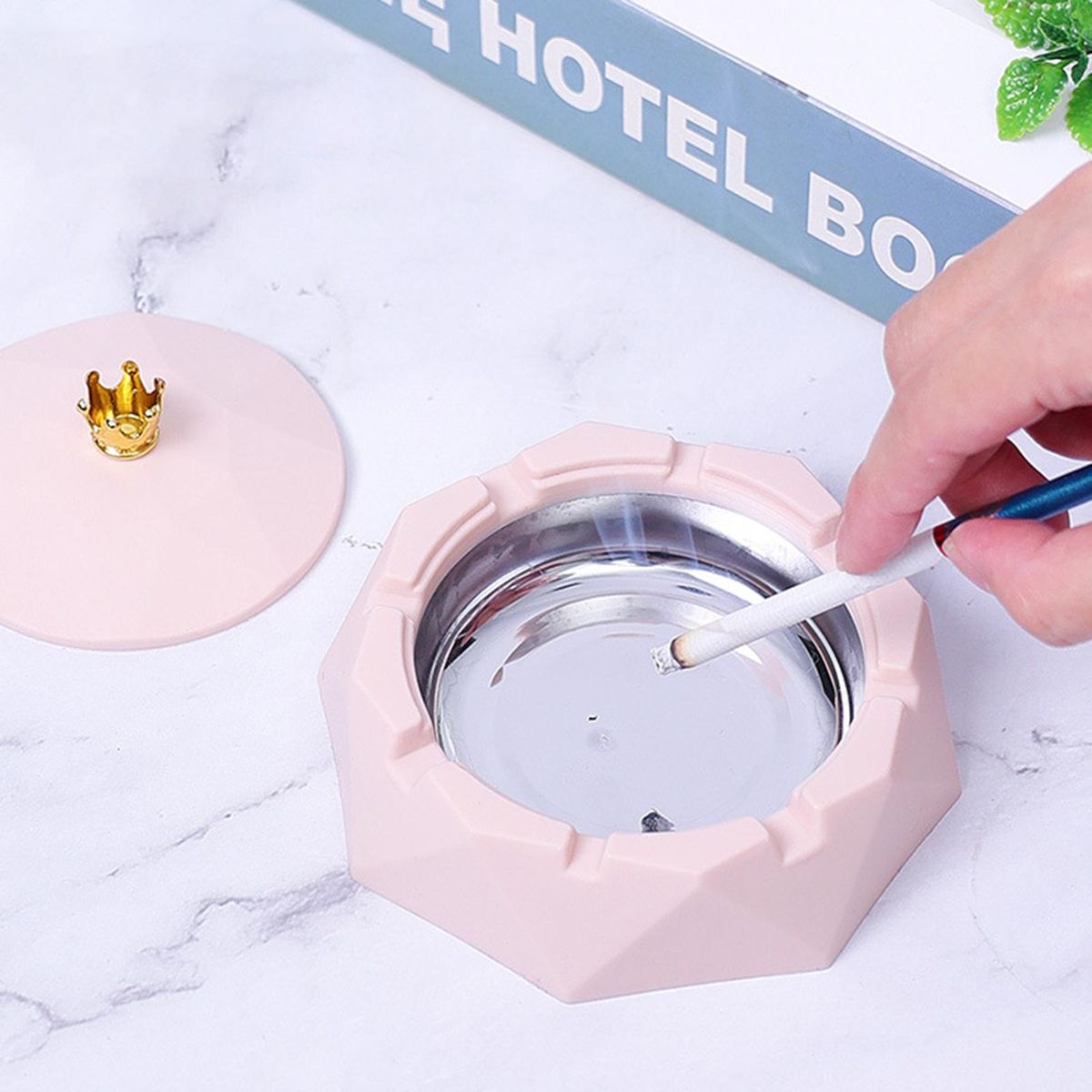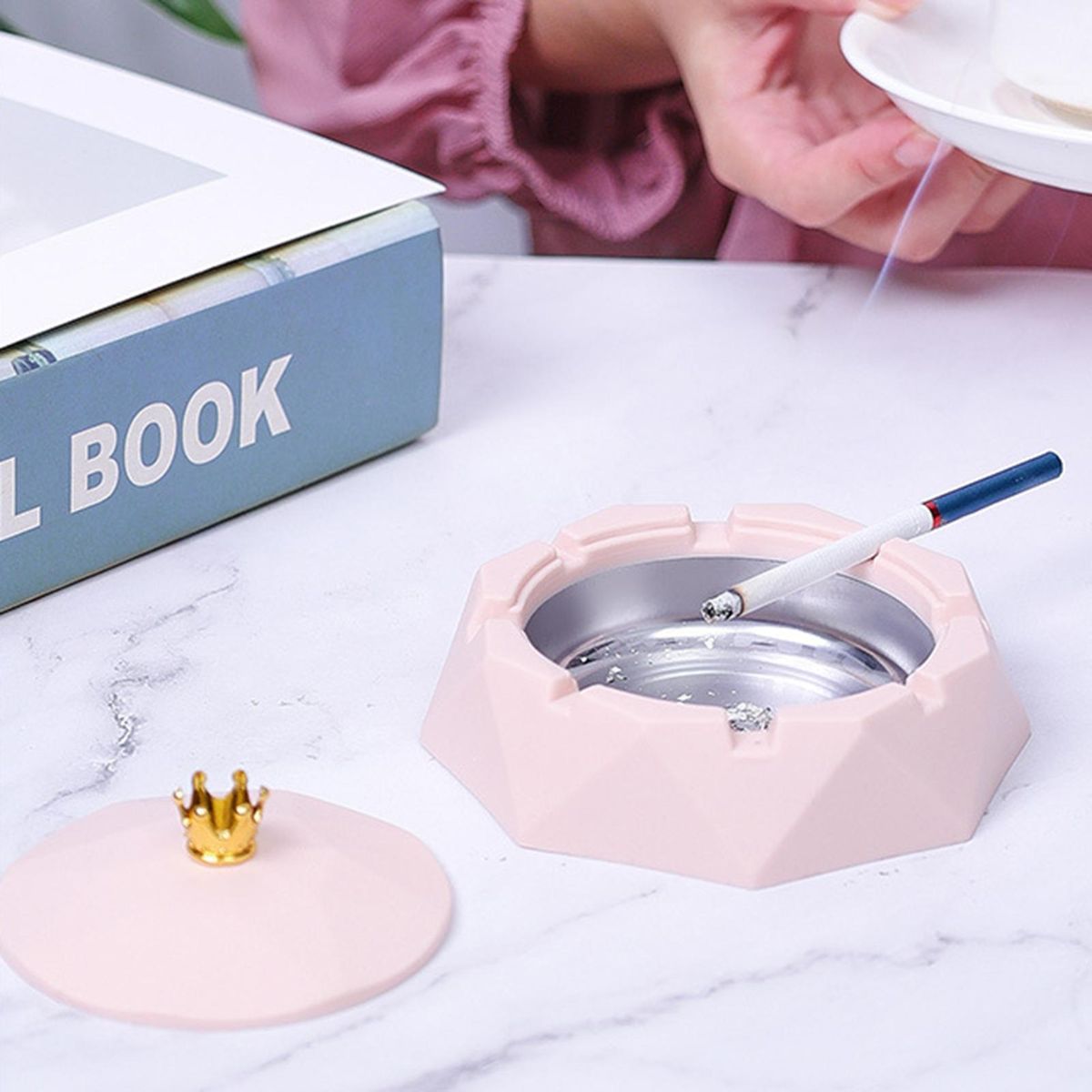 Designed with simple nordic style and crown top, this ashtray is also a exquisite desk decoration.