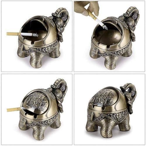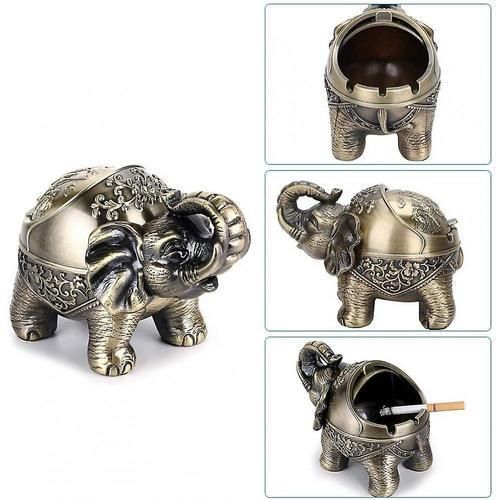 []: The Elephant Metal Ashtray Is Made Of Metal. It Never Fades, The Ashtray Is Shaped Like An Elephant, Has A Retro Touch And Provides A Unique Decoration For Your Desk. [ashtray Design]: 3 U-shaped Fluted Cigarette Holder, Can Put Cigarettes, Not Easy To Fall Out. Used To Contain A Lot Of Cigarette Butts And Soot. We Provide A Non-slip Base To Prevent The Ashtray From Slipping, Scratching The Table And Smoking, And Providing A Healthy And Smoke- Environment For Others. [windproof Semi-closed Cover Design]: The Old-fashioned Ashtray Has A Flexible Cover Which Can Prevent Dust From Being Washed Away, Improve The Smoke Flow, And Keep The Indoor Smell Fresh. It Is Also Very Convenient To Use [perfect Gift And Vintage Decoration]: Elephant Metal Ashtray Is An Exquisite Gift For Grandfather, Father, Husband Or Anyone Who Likes To Smoke Or Old Items. The Retro Table Decoration Is Very Suitable For Families, Hotels, Cafes, Terraces, Etc. [wide Uses]: Elephant Metal Ashtray Is A Good Gift For Smokers Or Non-smokers. The Ashtray Can Be Used Both Indoors And Outdoors. It Is An Ideal Choice For Your Bedroom, Living Room, Patio, Study, Vegetable Garden And Office. shipping Quantity: One Piece