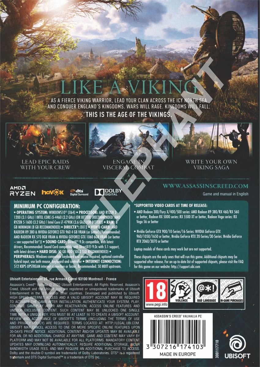 Become Eivor, a Viking raider raised to be a fearless warrior, and lead your clan from icy desolation in Norway to a new home amid the lush farmlands of ninth-century England. Find your settlement and conquer this hostile land by any means to earn a place in Valhalla.