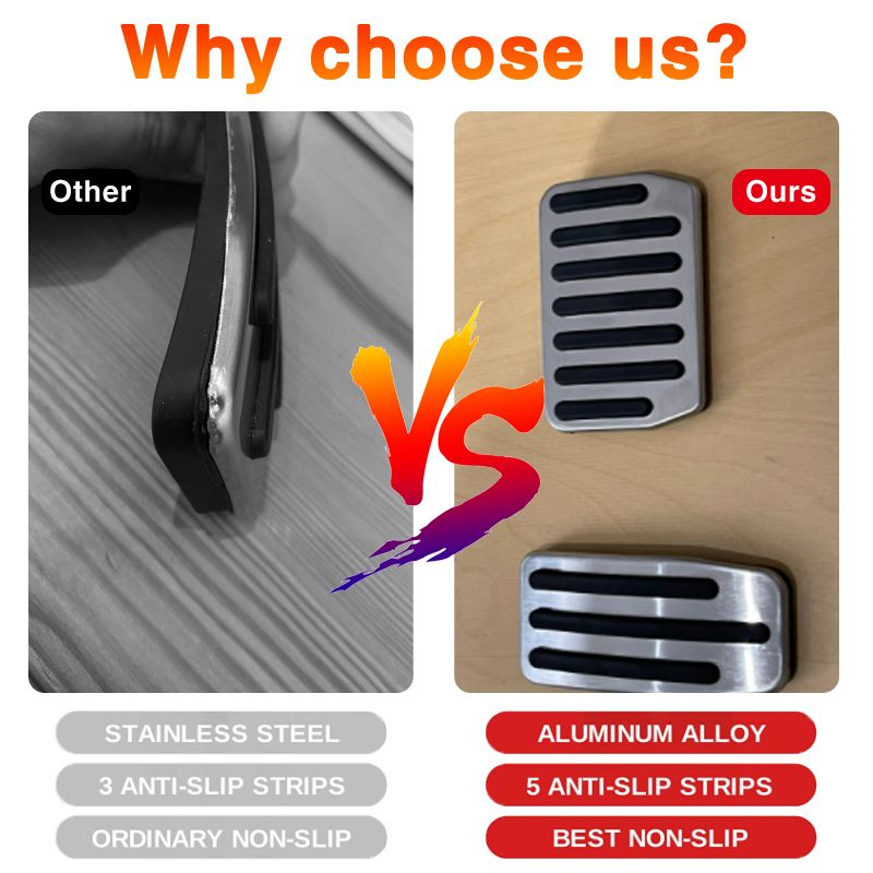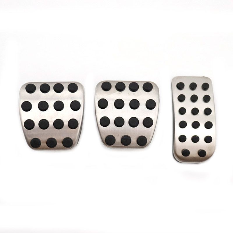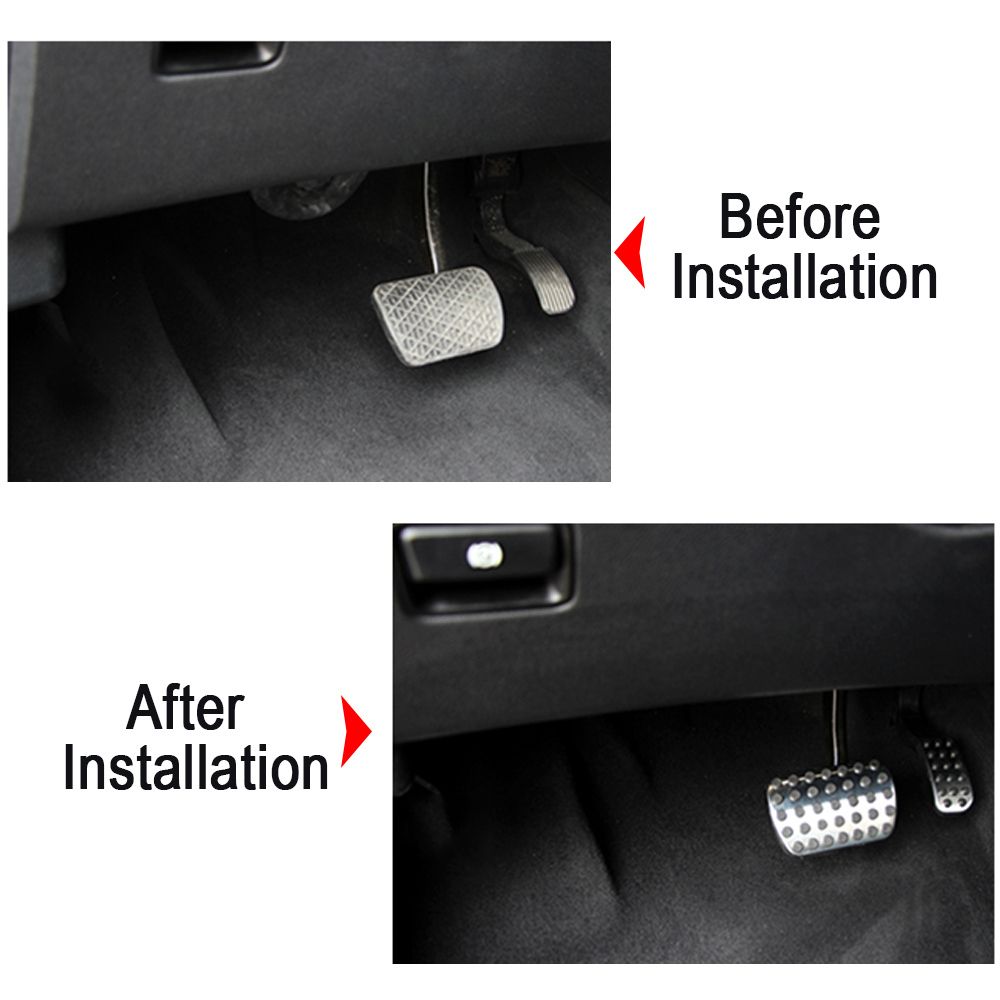 Mercedes Benz pedal cover Color: silver with black Material: Stainle Steel and Rubber Installation: Easy to install, no need to punch holes in your car. Brake pedal: Please tear off the car rubber cover to fit the product. Accelerator: You don't need to remove the rubber pedal, just cover the accelerator directly. Clutch pedal: Install the same as the accelerator pedal. Note: Please confirm the model before placing an order