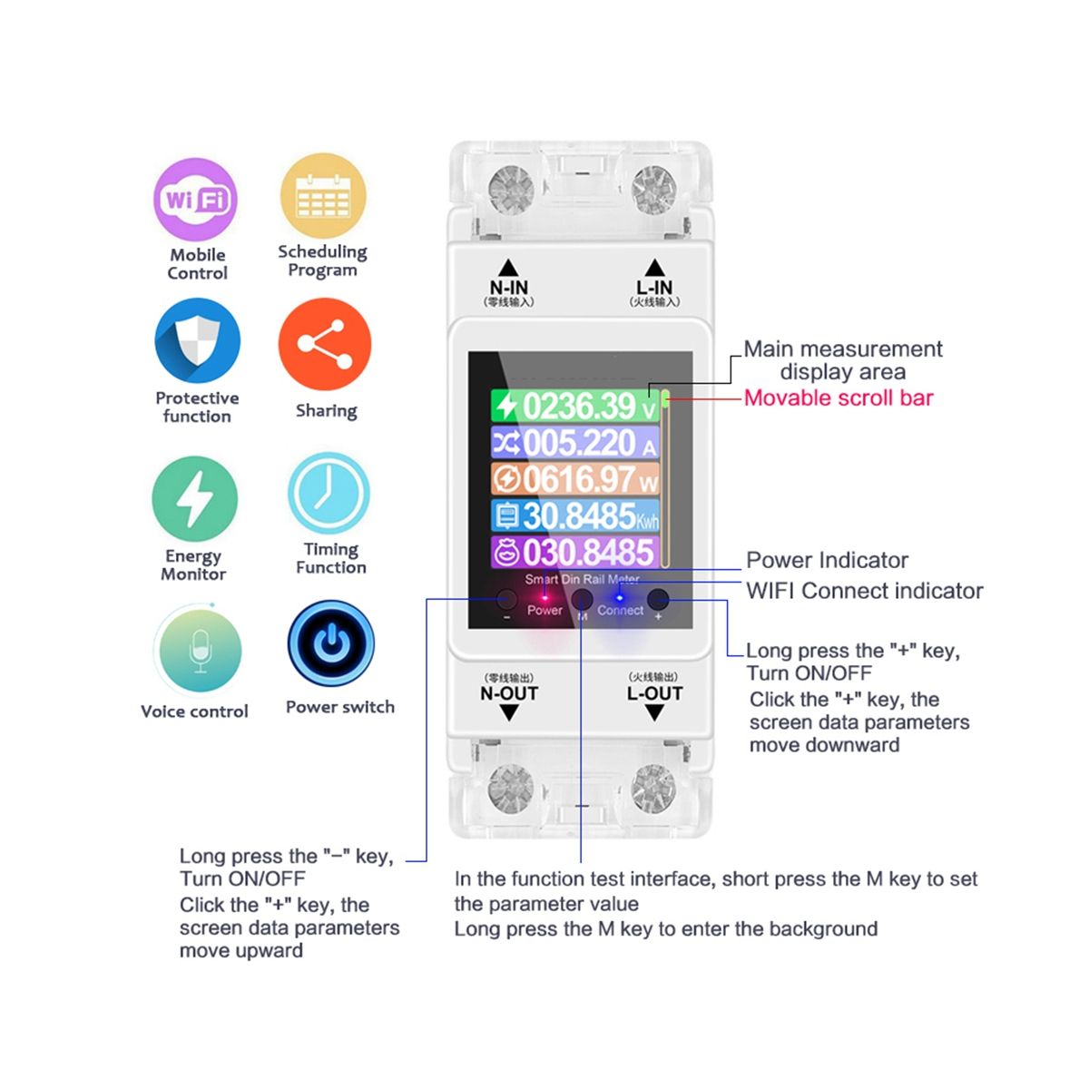 1x Din Rail Energy Meter(Due to different product batches, the appearance may be different, but the functions are the same)