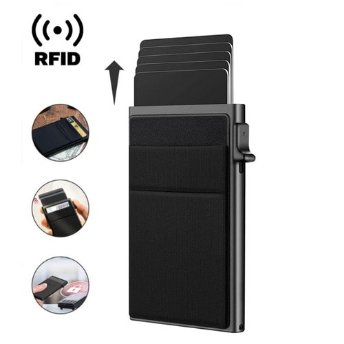 Card Holder Wallet for Men is an affordable and practical choice for those looking for a slim and stylish atm card holder. Made with metal, this wallet cards holder offers durability and a modern look. One notable feature of this wallet is its blocking technology, which provides protection against unauthorized scanning of credit cards and personal information. out this item