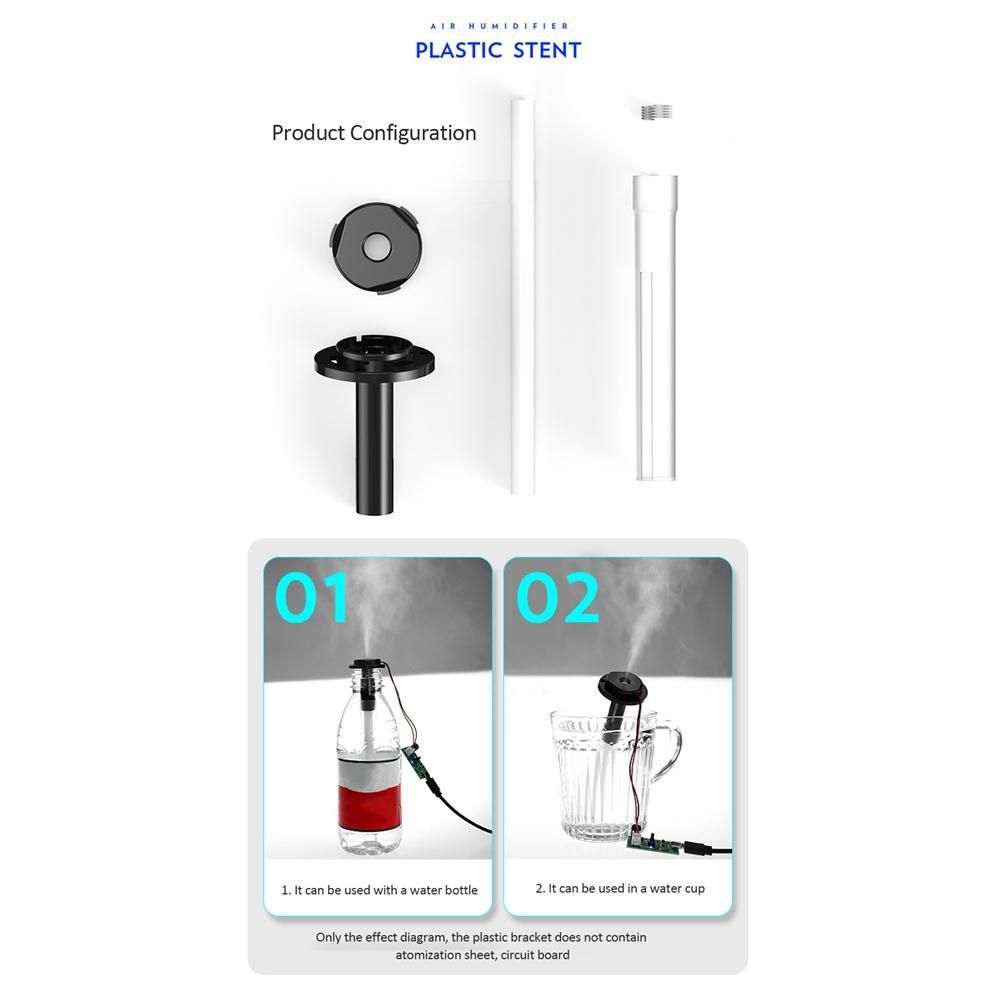 Detailed Information About The Product:1. Atomizing spray plastic bracket USB mini humidifier DIY experiment ultrasonic atomization module bracket accessories;