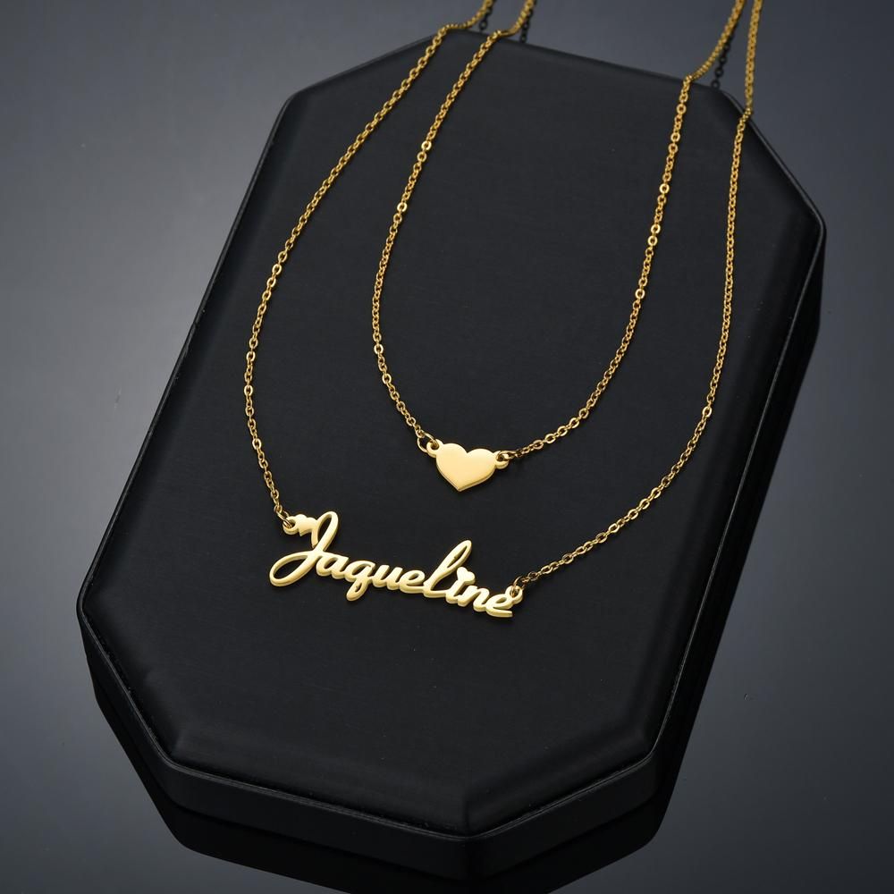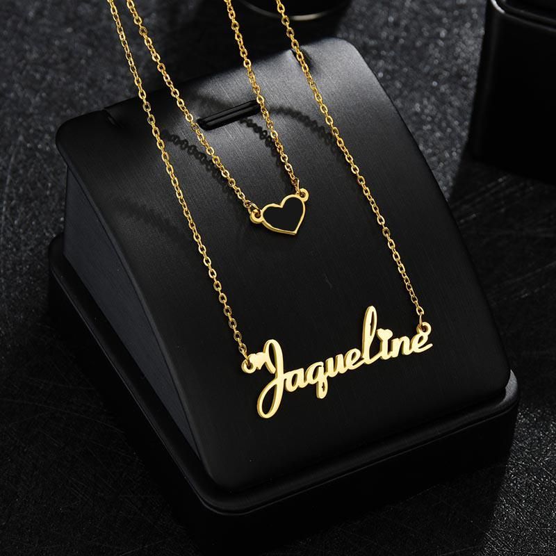 Name:Atoztide Customized Name Necklace Heart Choker Stainless Steel Personalized Letter Gold Color Double Layers Pendant Jewelry for Women Gift