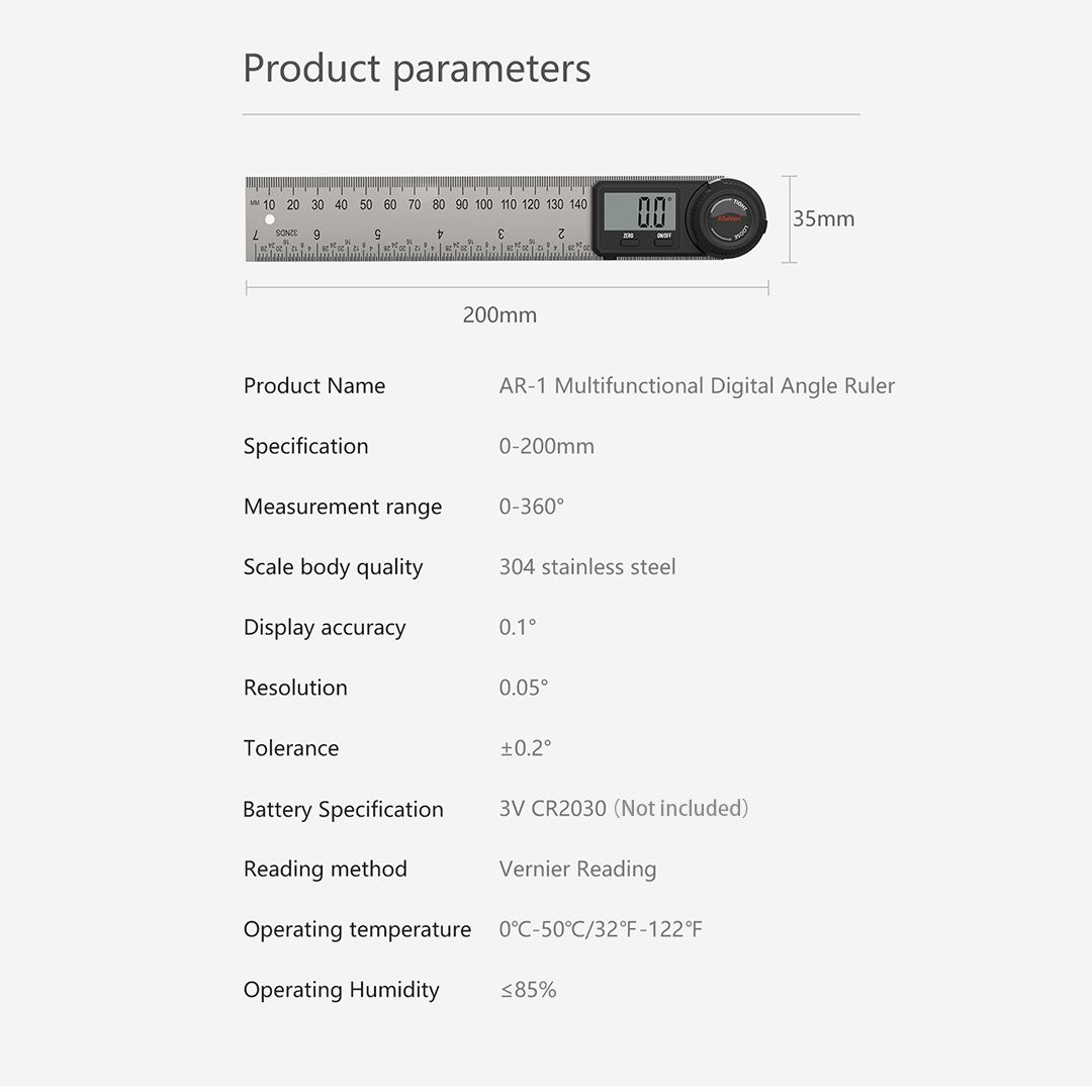 Rotary double arms allow for 360 degree internal and external angle measurement, and there\'s a lock knob for keeping the measurement data, more convenient to use.