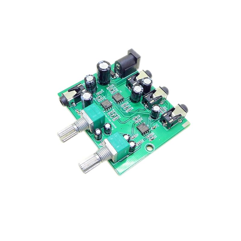 Feature All sockets is stereo 3.5mm, input one way, both 2 ways output is same.And input two at the same time, then output will be the mixed sound. Two inputs can input two different sound sources at the same time, and plug in at the same time will not affect each other. The output is also, You can connect two headphones or two amplifiers at the same time. The first stage OP AMP is NJM4580, and the second stage driver is NJM4556A high-current operational AMP, all of them are ,which is stable low noise. Package include: 1*Mixer board(without power adapter)